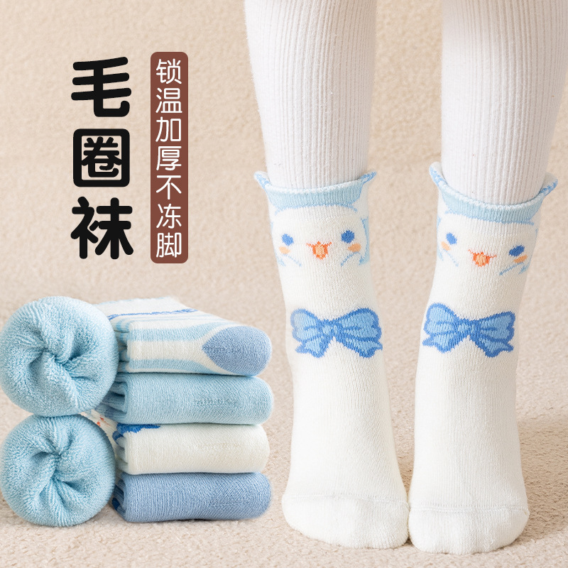 겨울 두꺼운 테리 양말 면화 겨울 따뜻한 만화 소녀 아기 1-12 세 초등학생 튜브 두껍게 한 아이들스토어 가기