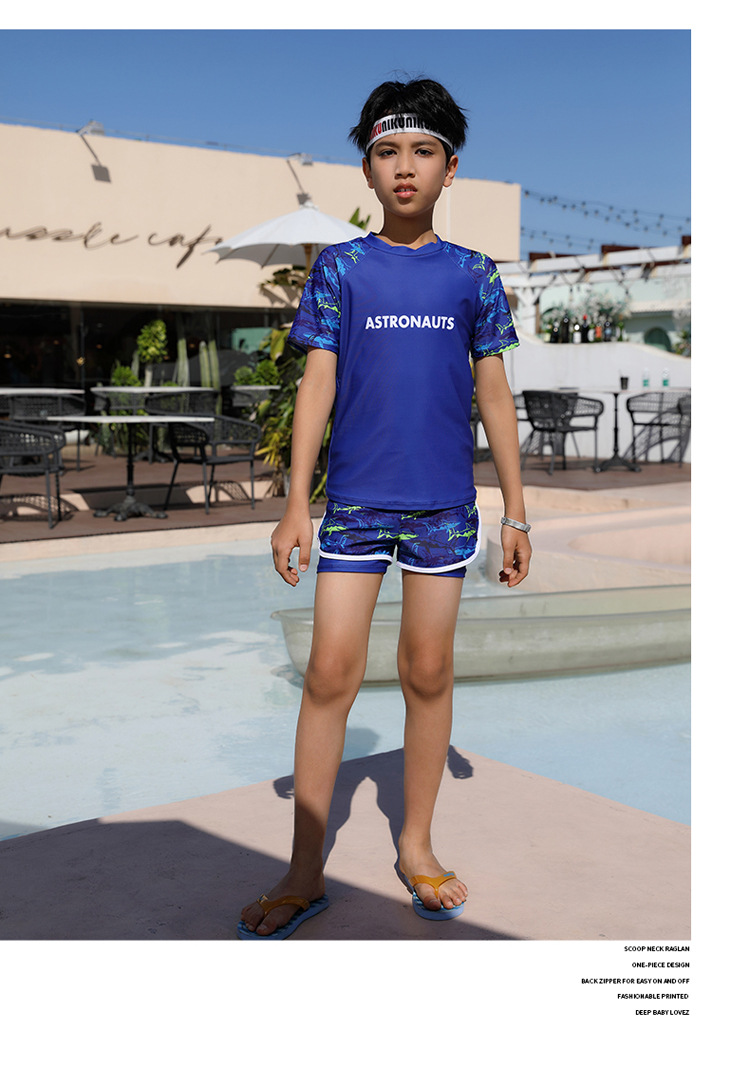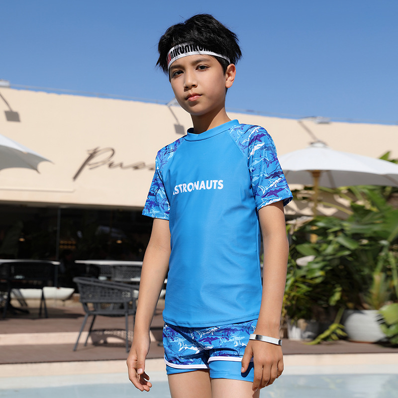 공장 직접 판매 소년 수영복 스포츠 스타일 큰 어린이 학생 분할 3 피스 세트 큰 어린이 수영복 수영 트렁크스토어 가기