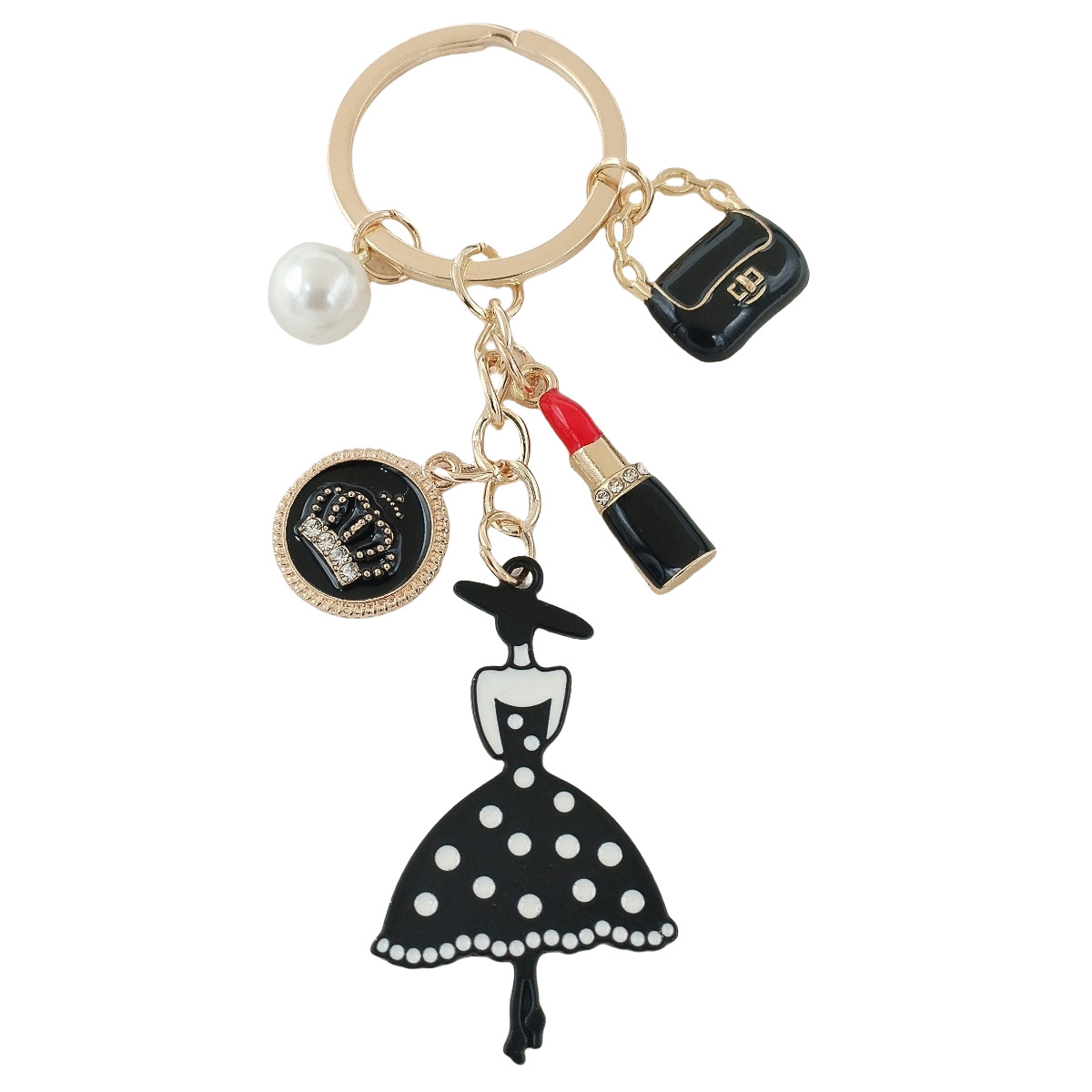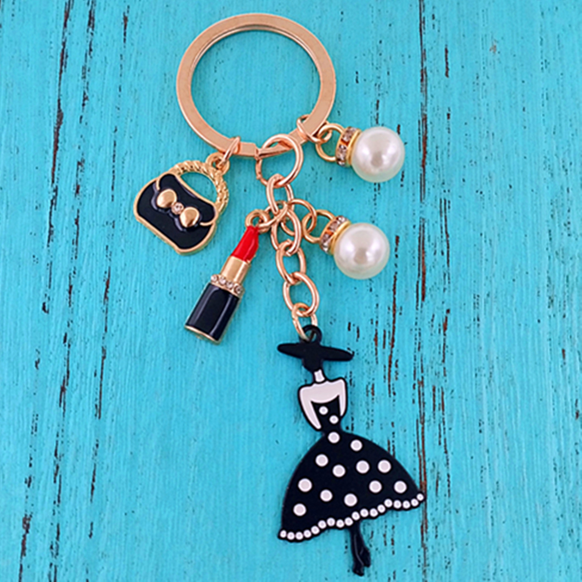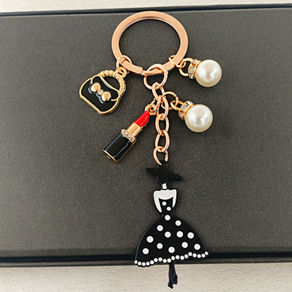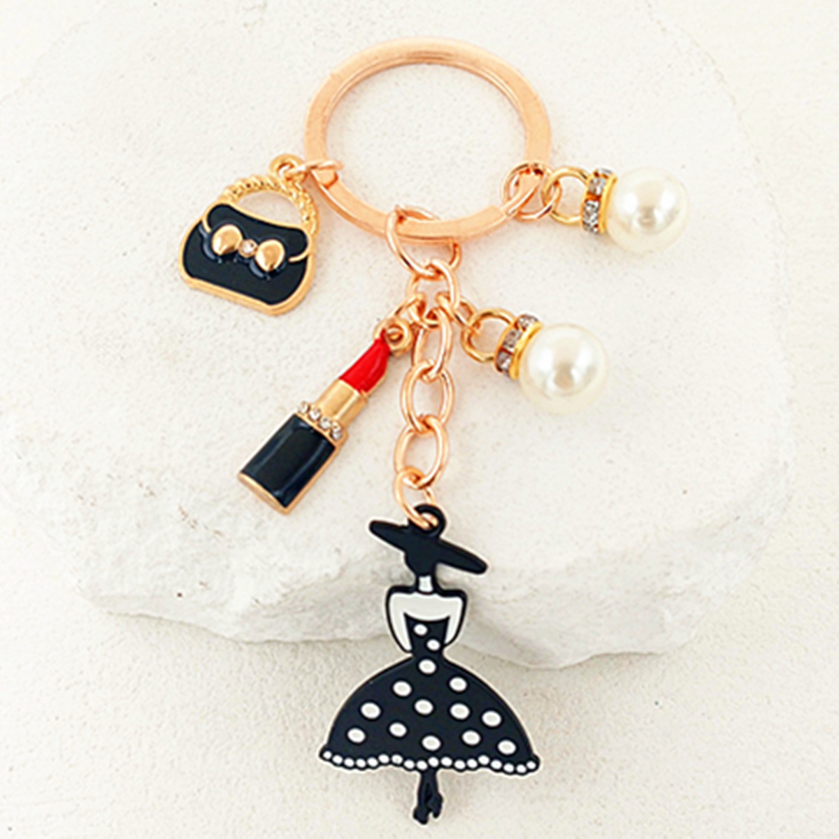 국경 간 한국 패션 오일 블랙 스커트 립스틱 펜던트 키 체인 진주 키 체인 여성 가방 액세서리