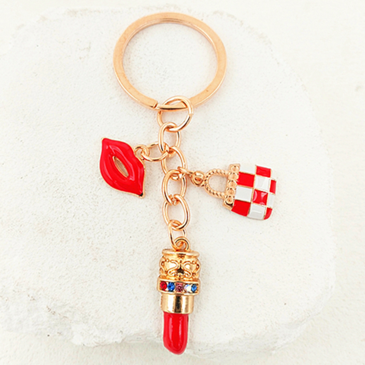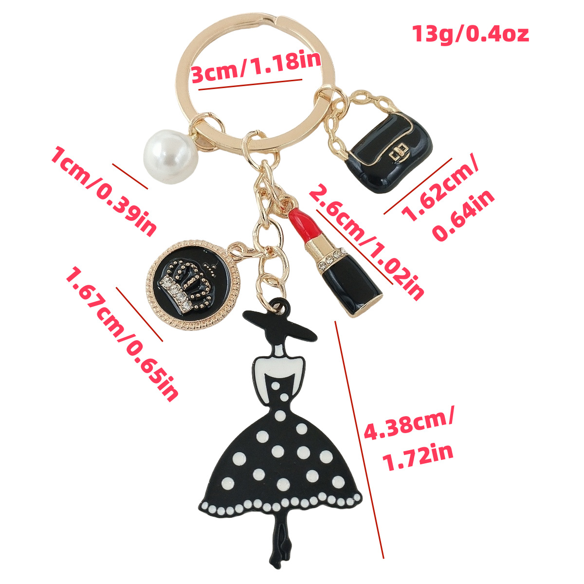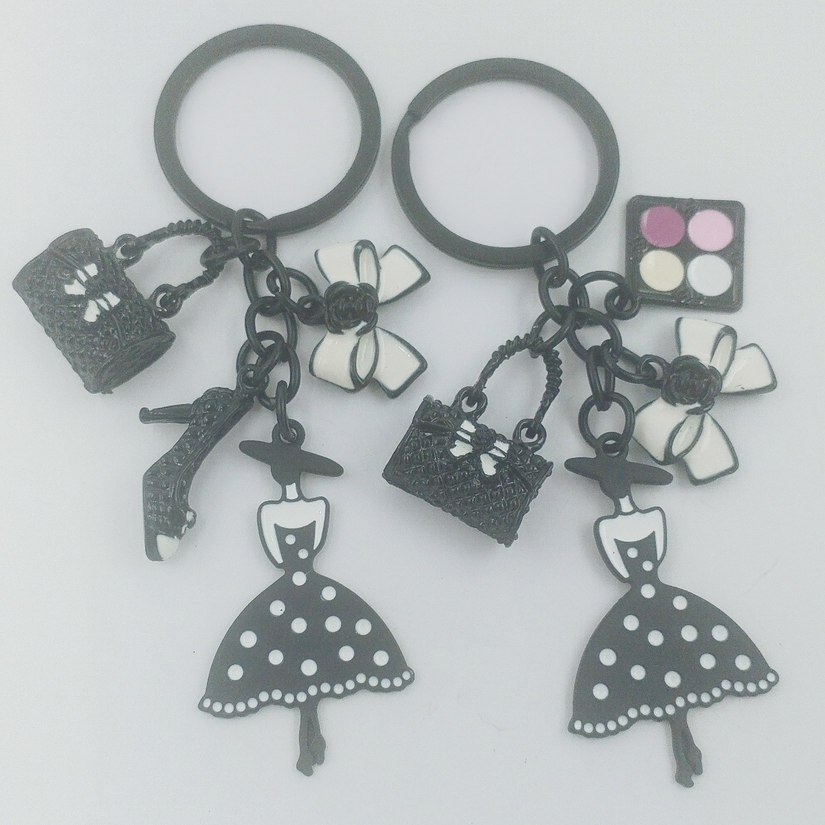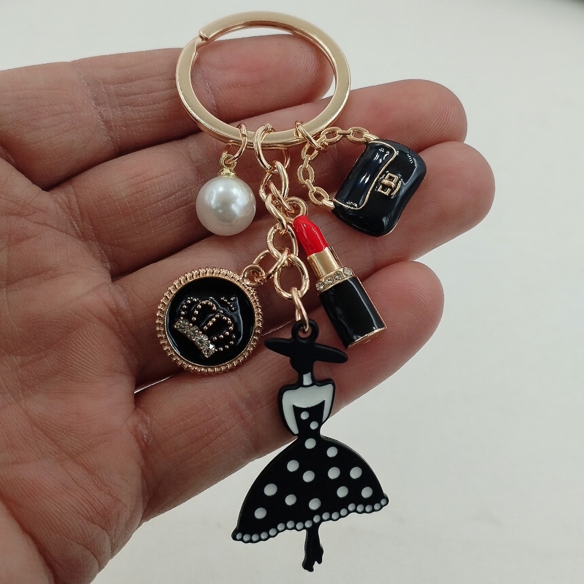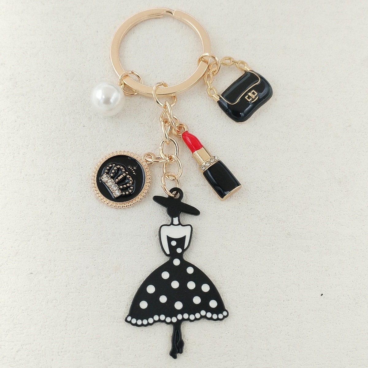 국경 간 한국 패션 오일 블랙 스커트 립스틱 펜던트 키 체인 진주 키 체인 여성 가방 액세서리