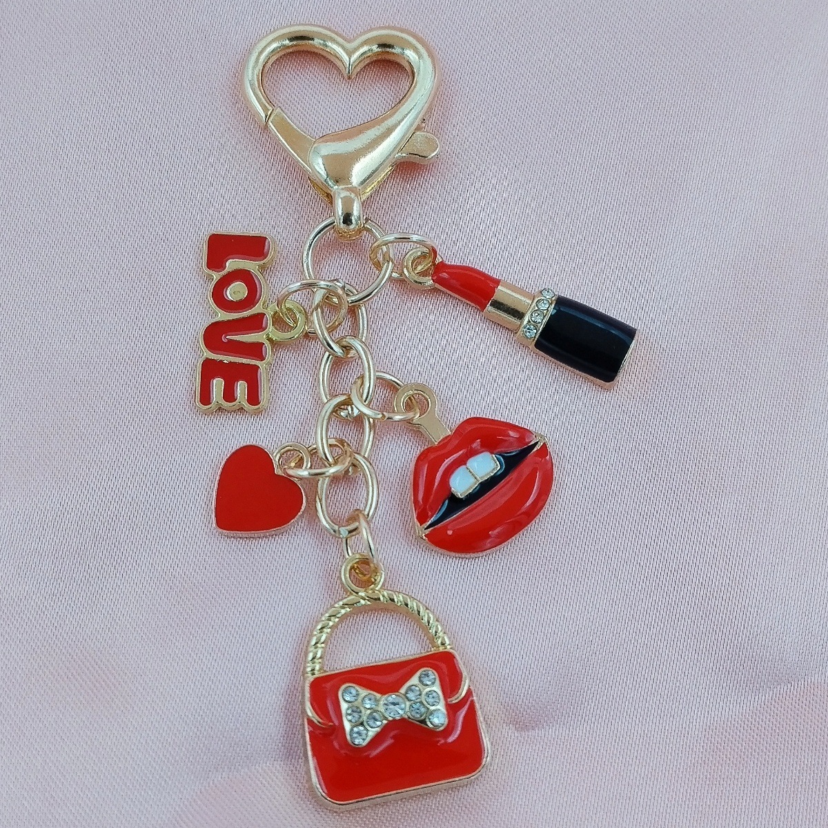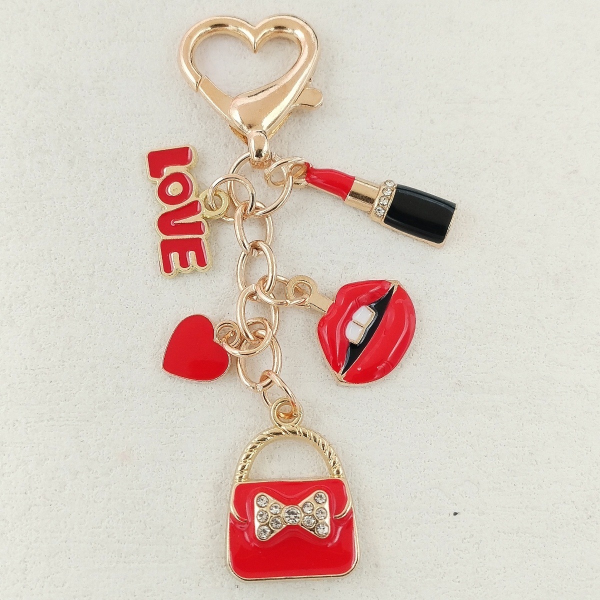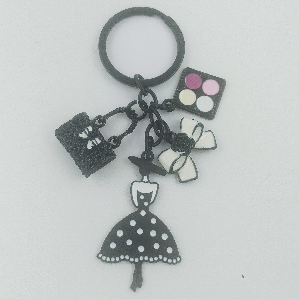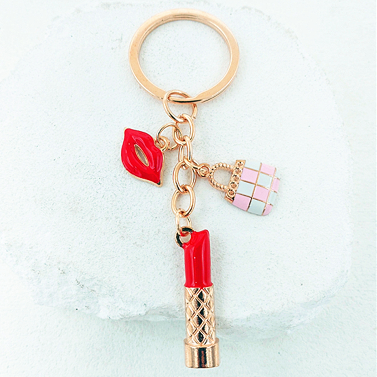 국경 간 한국 패션 오일 블랙 스커트 립스틱 펜던트 키 체인 진주 키 체인 여성 가방 액세서리
