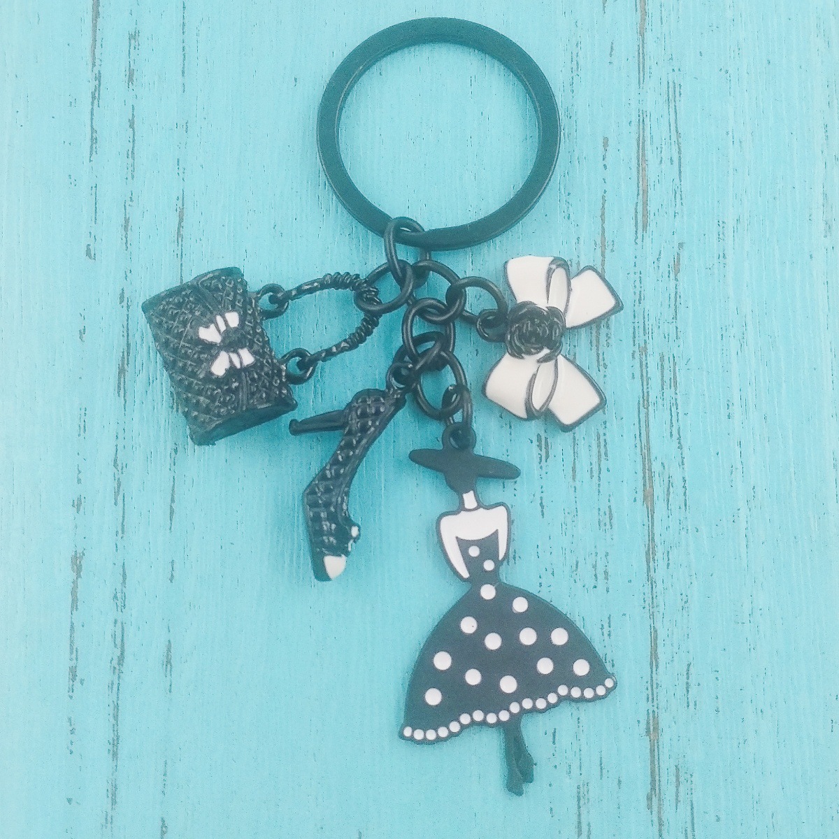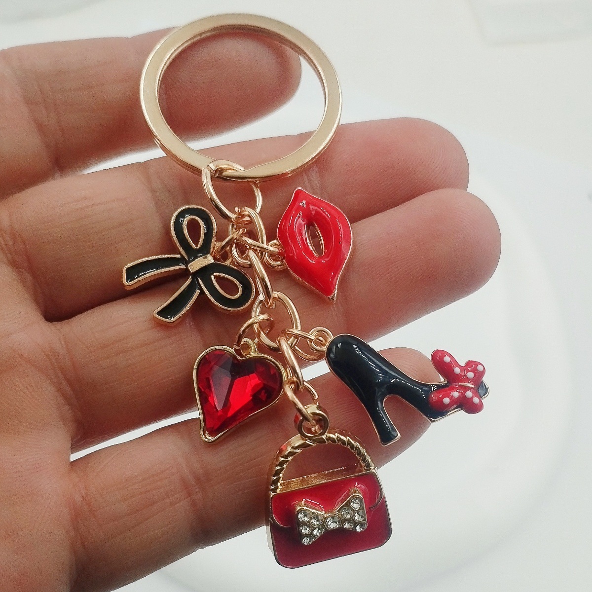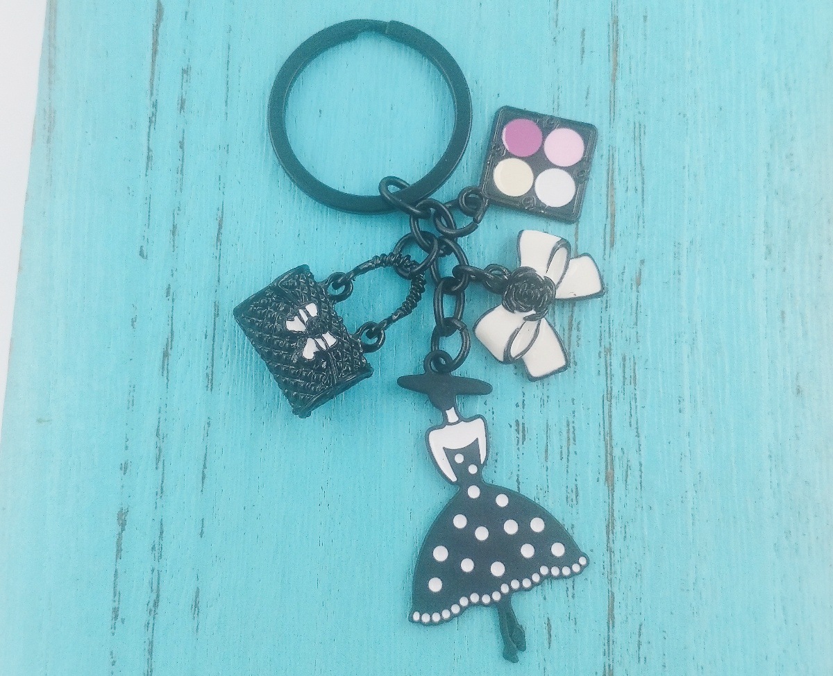 국경 간 한국 패션 오일 블랙 스커트 립스틱 펜던트 키 체인 진주 키 체인 여성 가방 액세서리스토어 가기