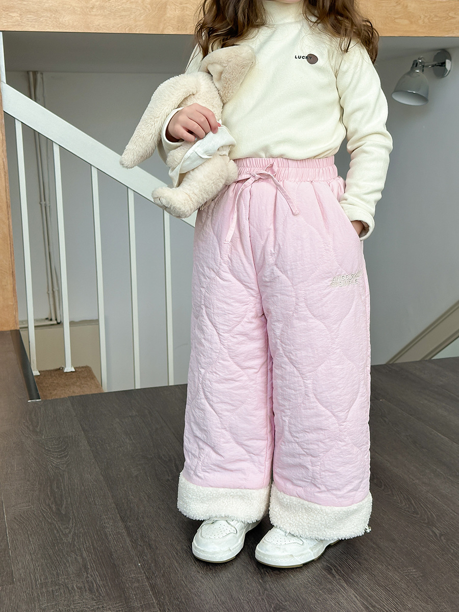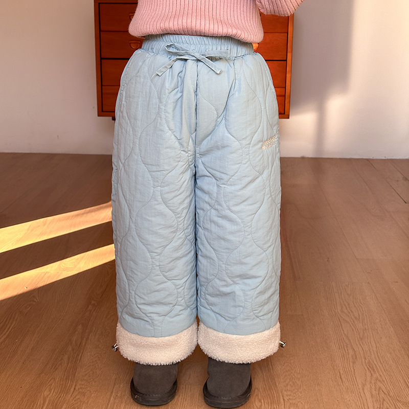 엘모 베이 베이 소녀 한국 스타일 두꺼운 면 따뜻한 스트레이트 스키 바지 겨울을위한 캐주얼 루즈 봉제 바느질 면 바지