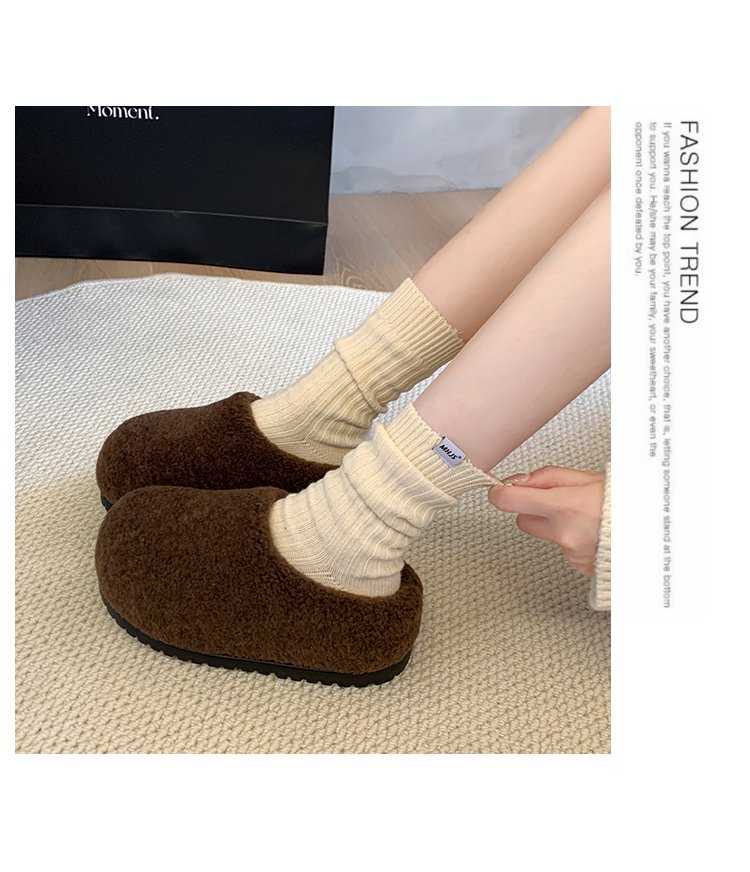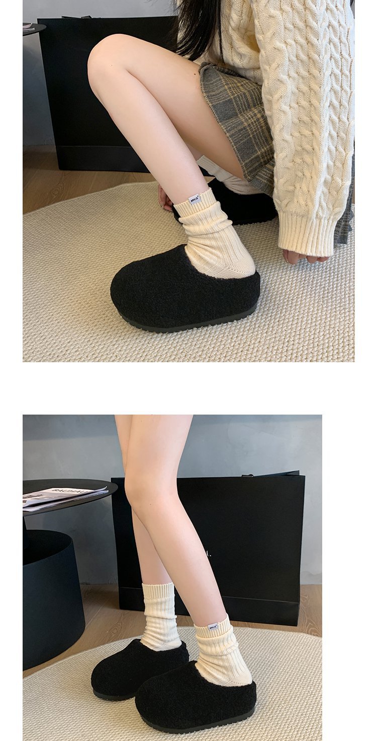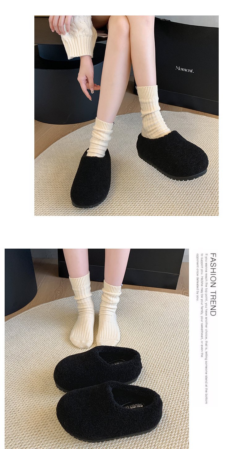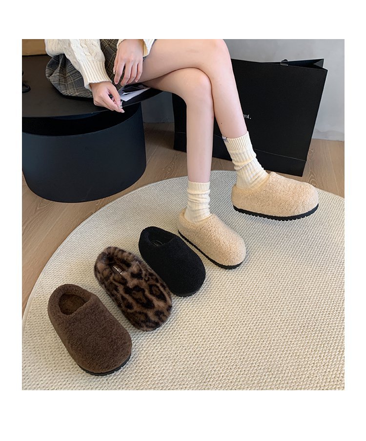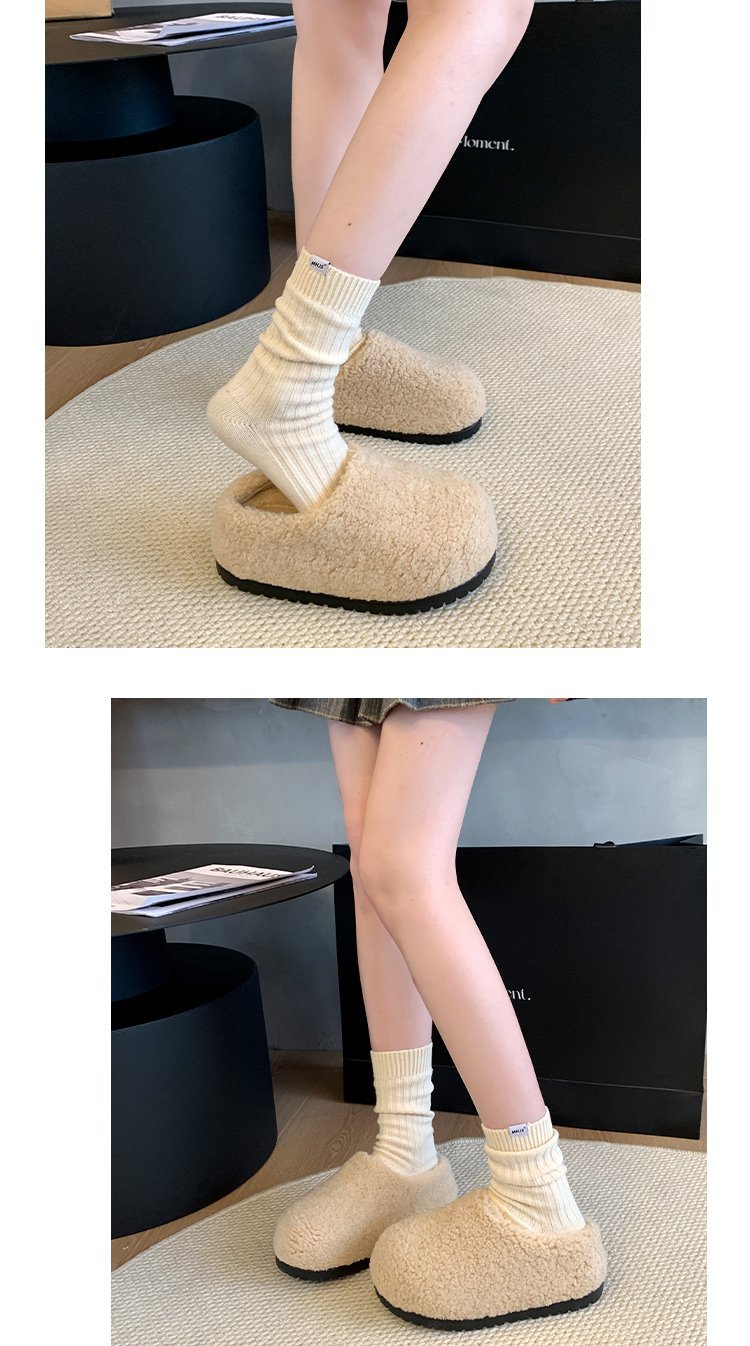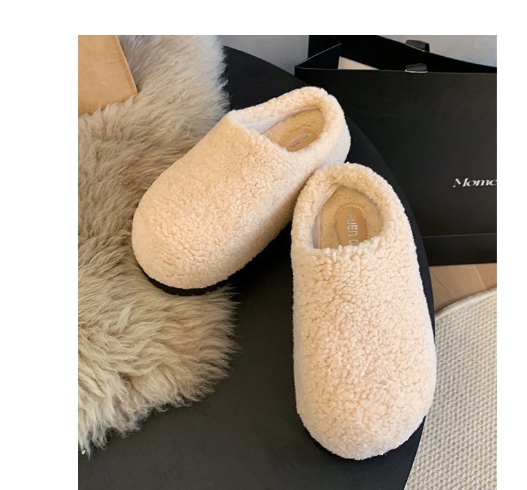 2024 겨울 새 스타일 Baotou Mao Slippers 여성용 기모 따뜻한 내부 높이 증가 양모 캐주얼 경량 올매치 트렌디
