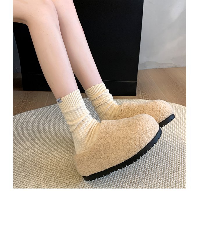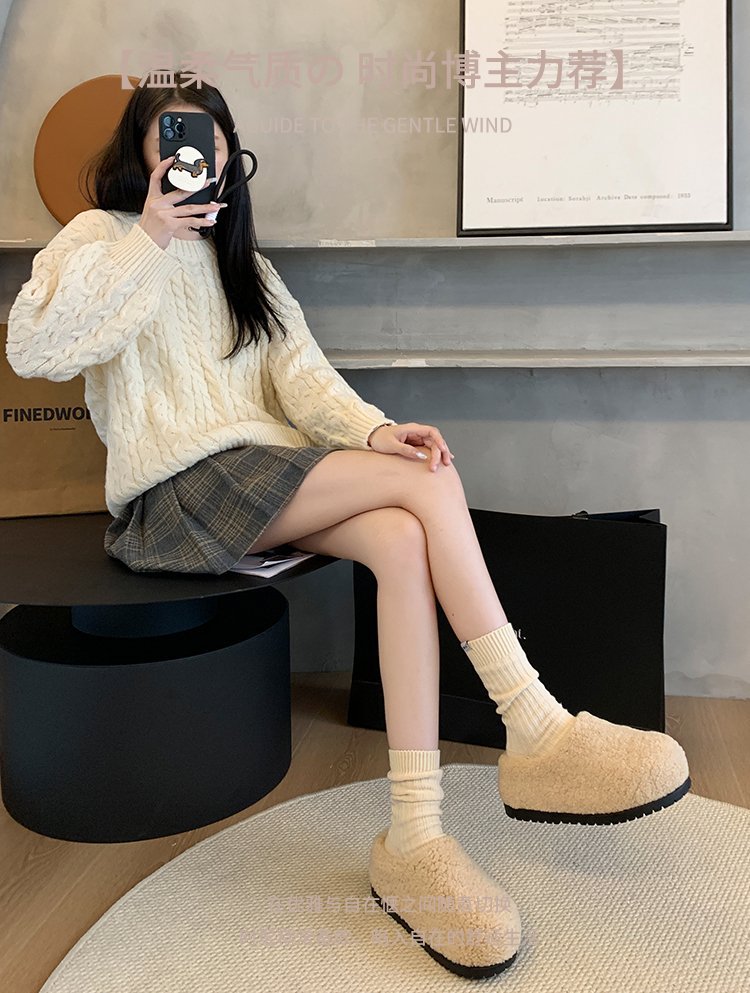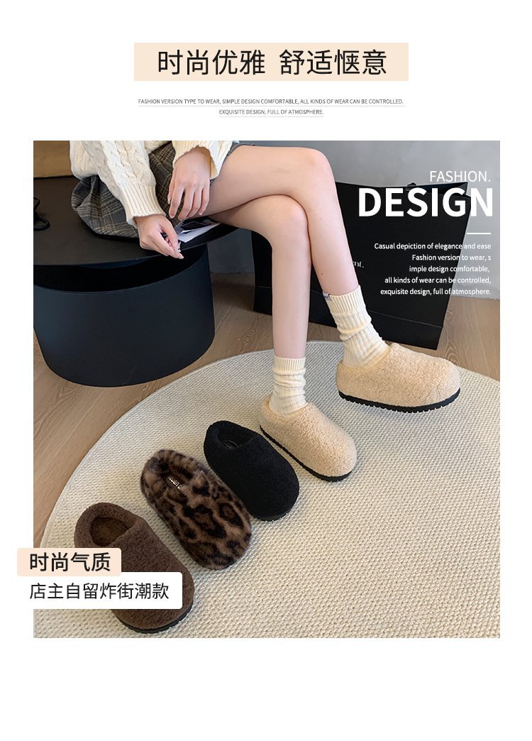 2024 겨울 새 스타일 Baotou Mao Slippers 여성용 기모 따뜻한 내부 높이 증가 양모 캐주얼 경량 올매치 트렌디스토어 가기