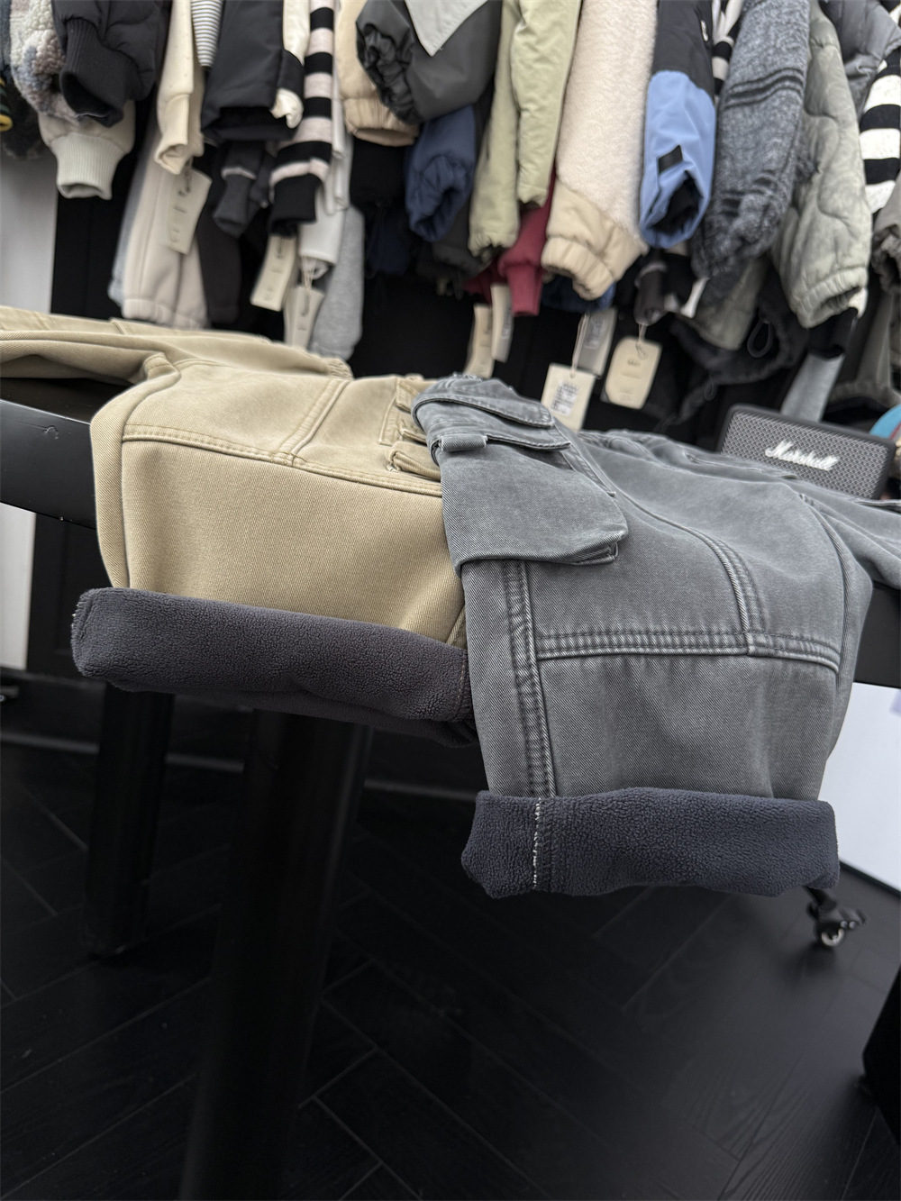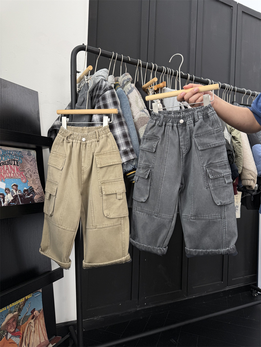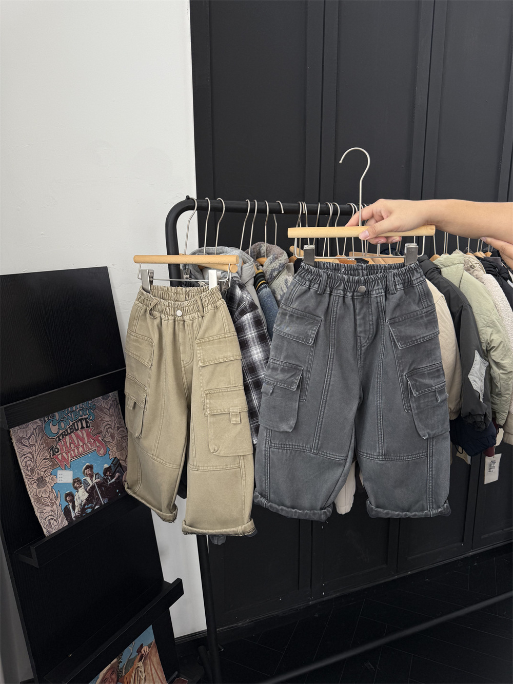 남학생과 여학생을위한 겨울 어린이 스타일의 고민 twill 원피스 벨벳 바지 기모 두꺼운 스트레이트 팬츠 바지스토어 가기