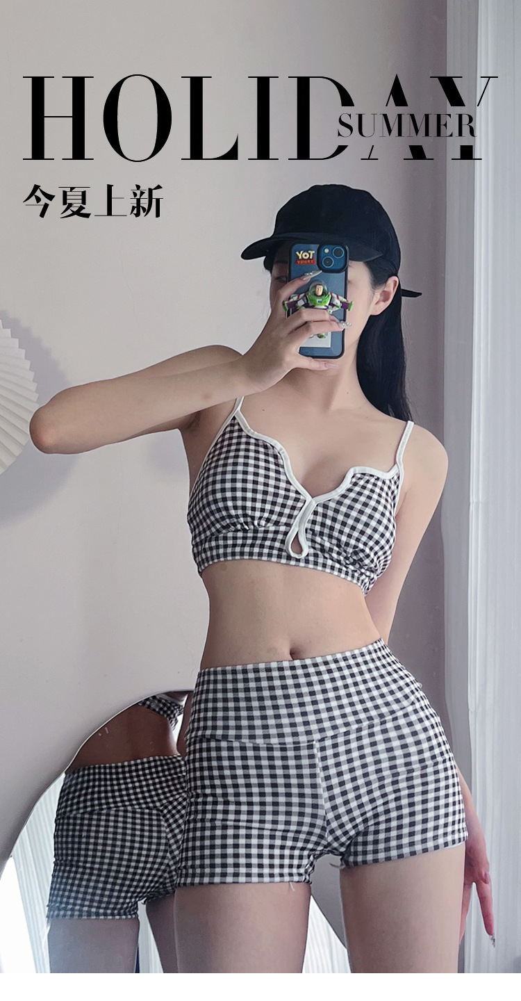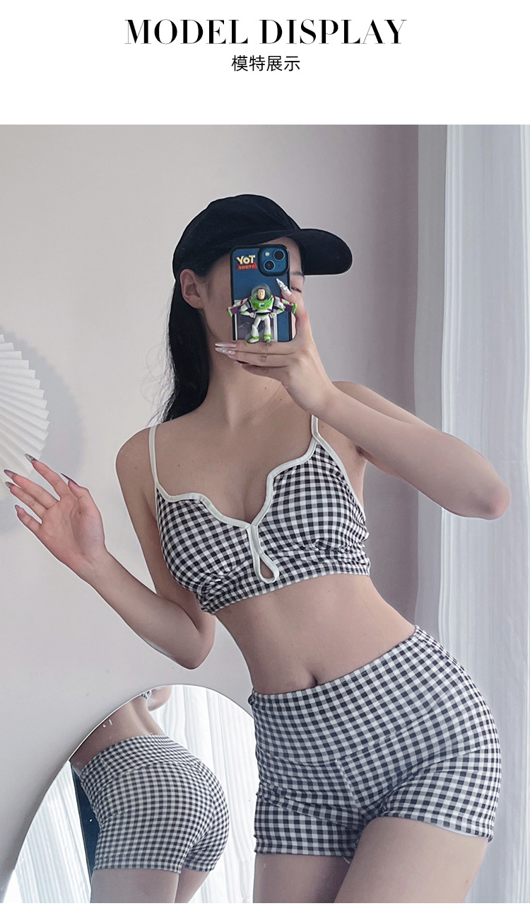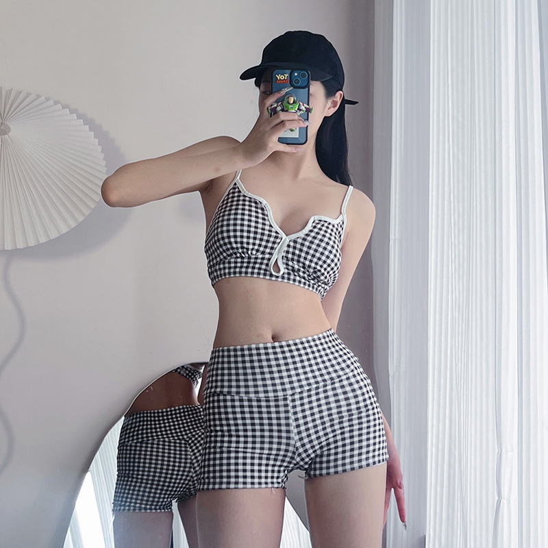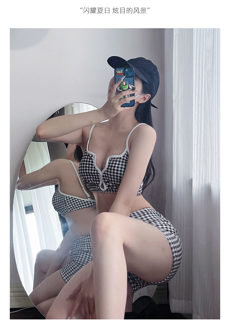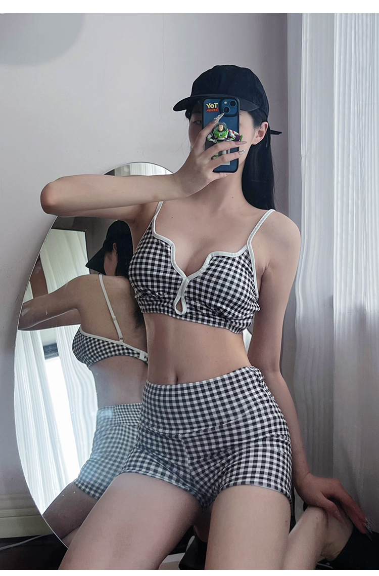 빈티지 대비 빨간 격자 무늬 원피스 수영복 여성용 섹시한 백리스 스파이스 소녀 순수한 욕망 작은 가슴 여름 해변 휴가스토어 가기