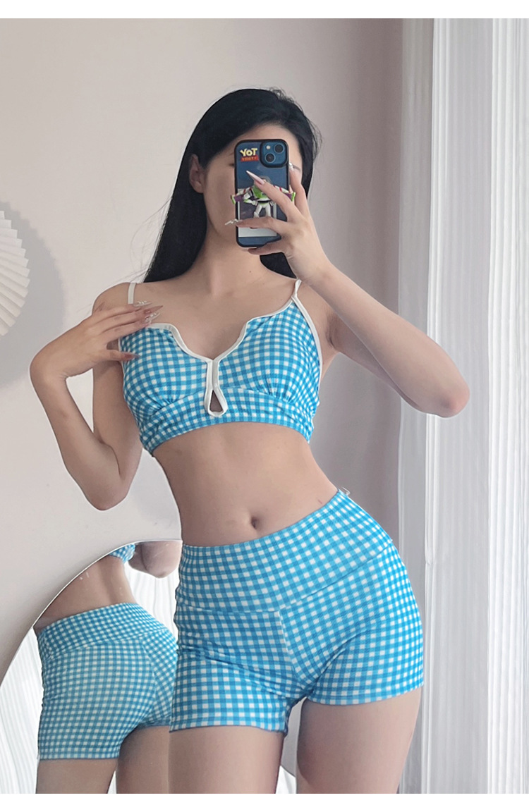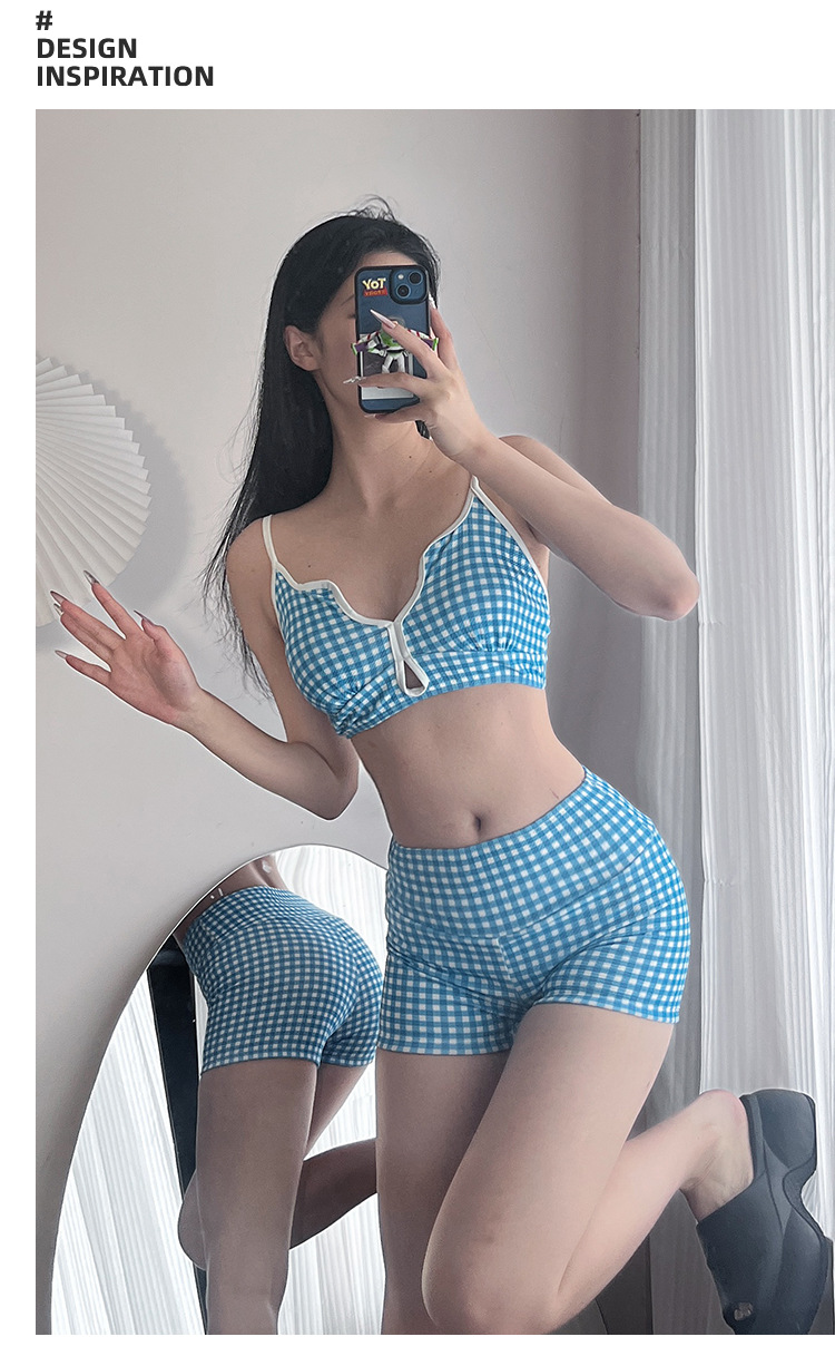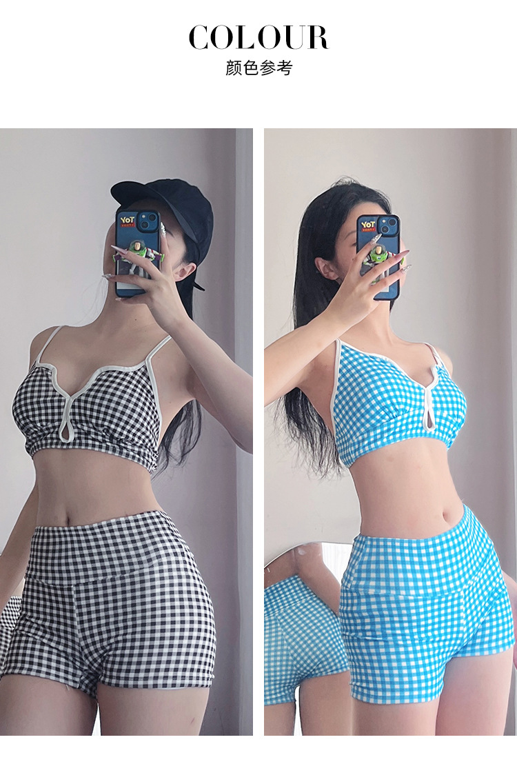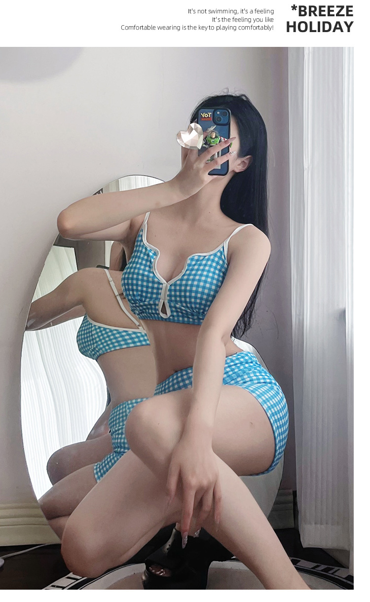 빈티지 대비 빨간 격자 무늬 원피스 수영복 여성용 섹시한 백리스 스파이스 소녀 순수한 욕망 작은 가슴 여름 해변 휴가스토어 가기