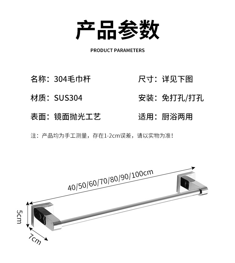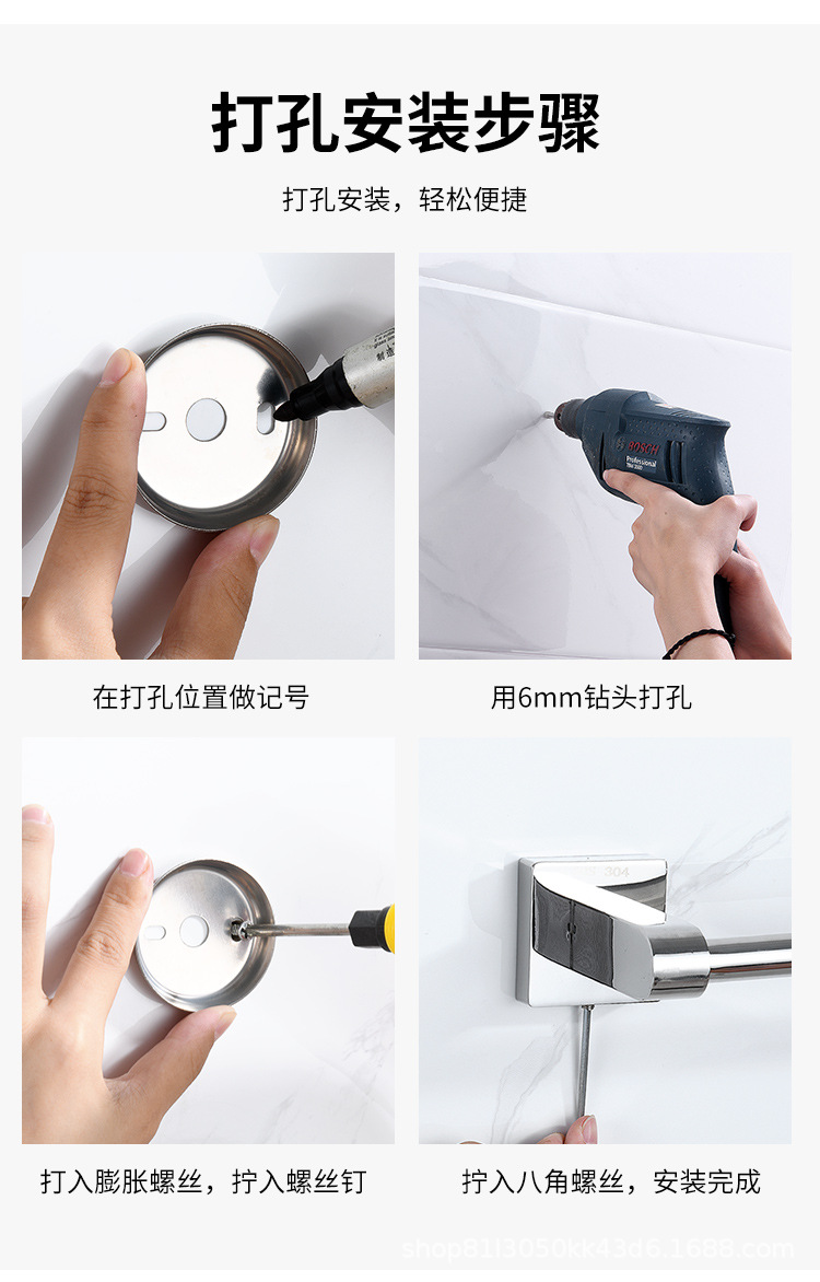 천공되지 않은 스테인레스 스틸 타월 랙 유치원 욕실 304 교수형 수건 바 욕실 보관 랙 벽 교수형