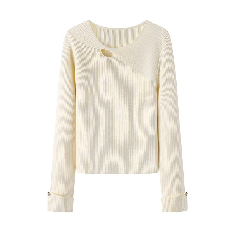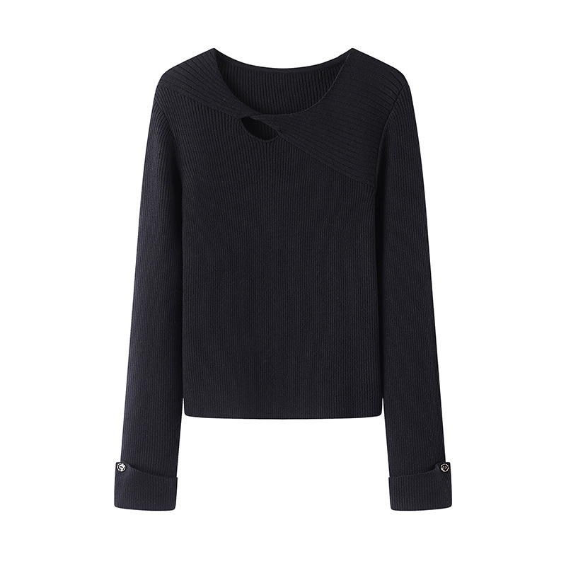 짧은 중공 내베이스 셔츠 니트 스웨터 여성의 2024 가을과 겨울 새로운 양모 탑 KSA2411003