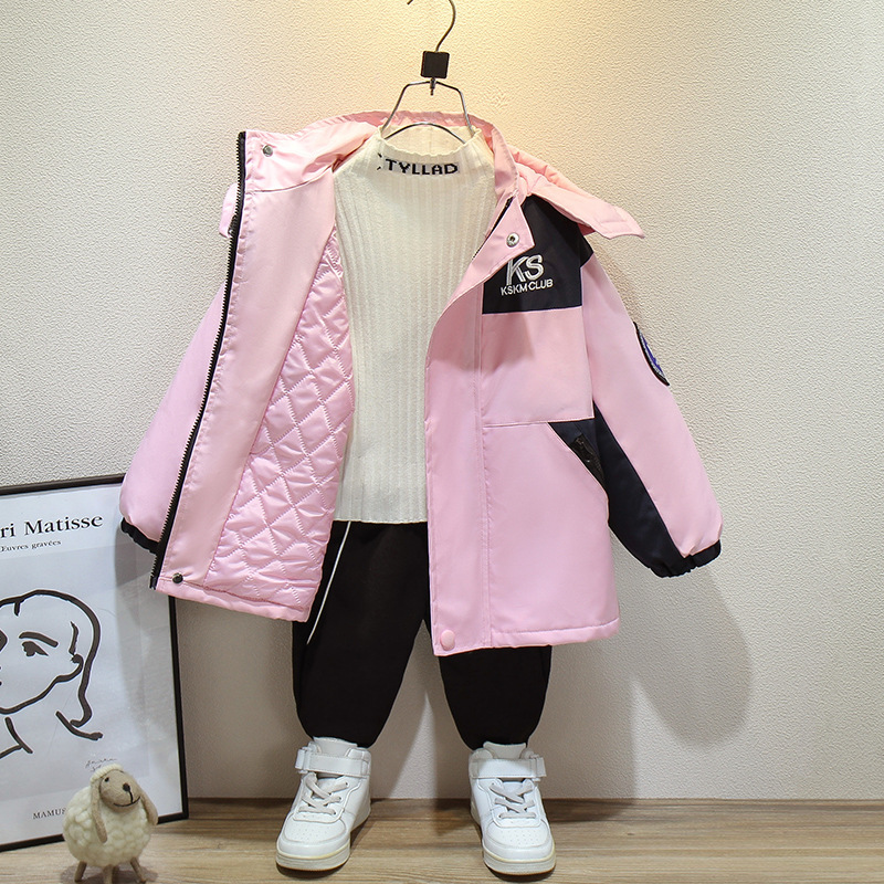 여자 면 패딩 두꺼운 코트 아기의 겨울 옷 서양식 충전 옷 여성의 2024 새로운 어린이 가을과 겨울 바람막이