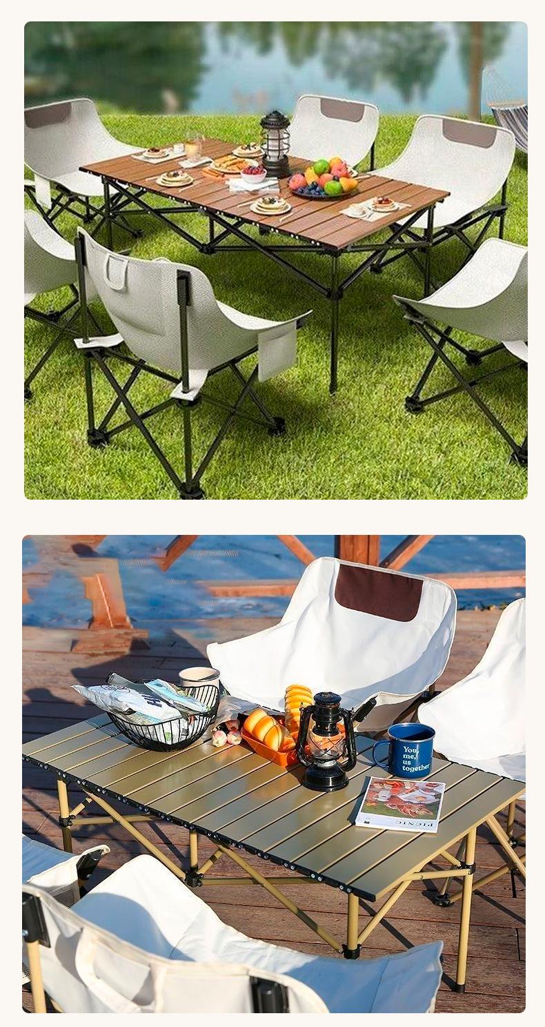 • 베이지 특대형 롱테이블 120x55x50+화이트문 의자 6개(수납가방 포함)