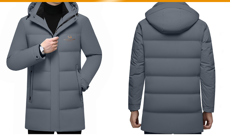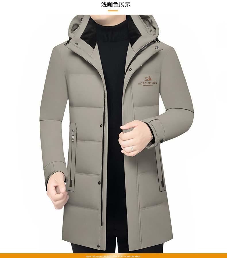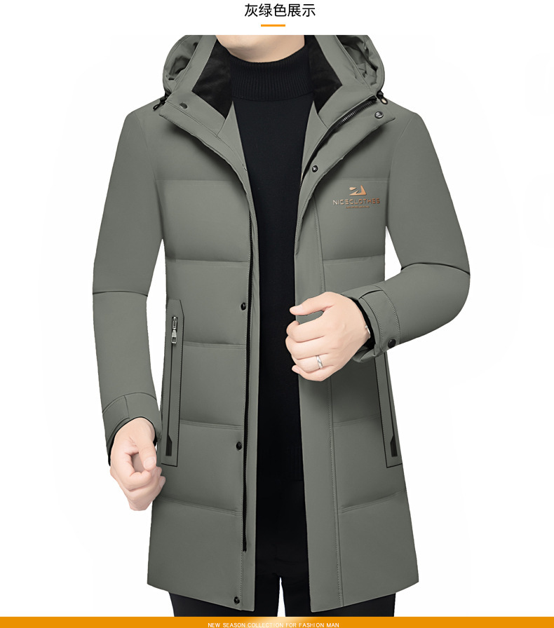 2024 거위, 중장 모자 분리형 비즈니스 캐주얼 다운 재킷 남성 긴 겨울 중년 남성 의류