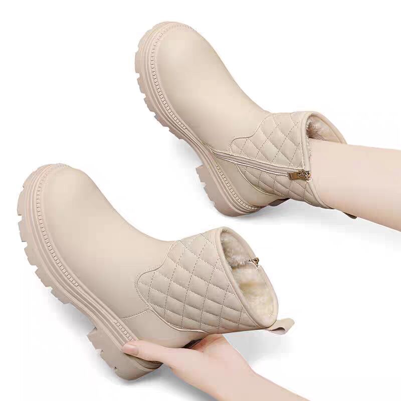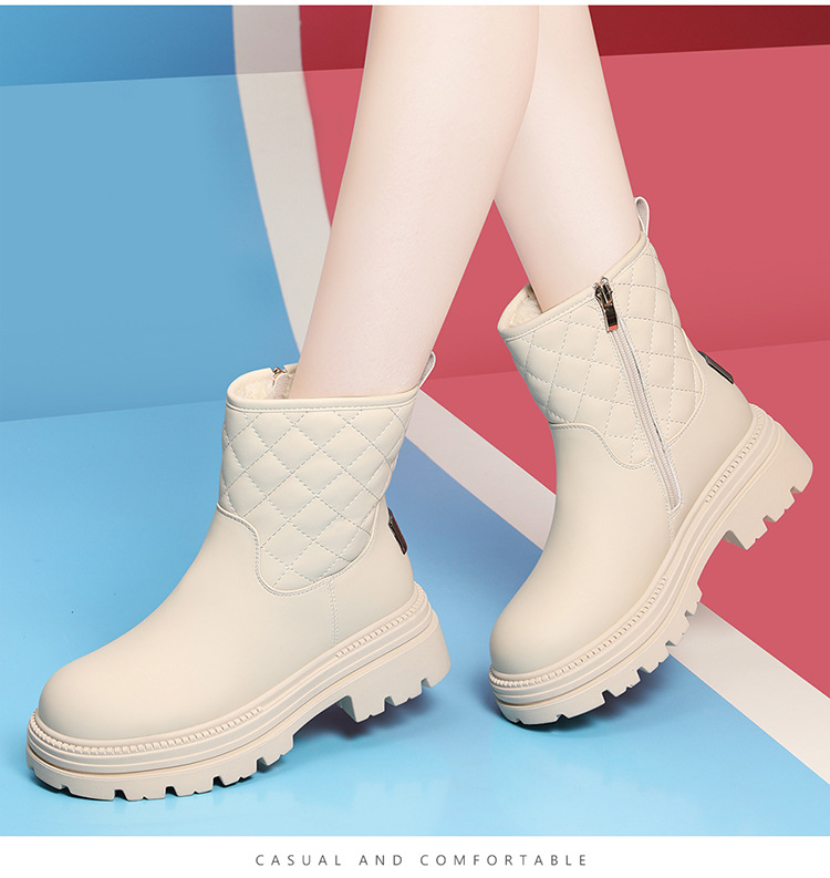 2025년 신상 여성용 동북부 스노우 부츠, 겨울용 두꺼운 보온 안감, 두꺼운 밑창, 흰색 부츠, 여성용 숏부츠스토어 가기
