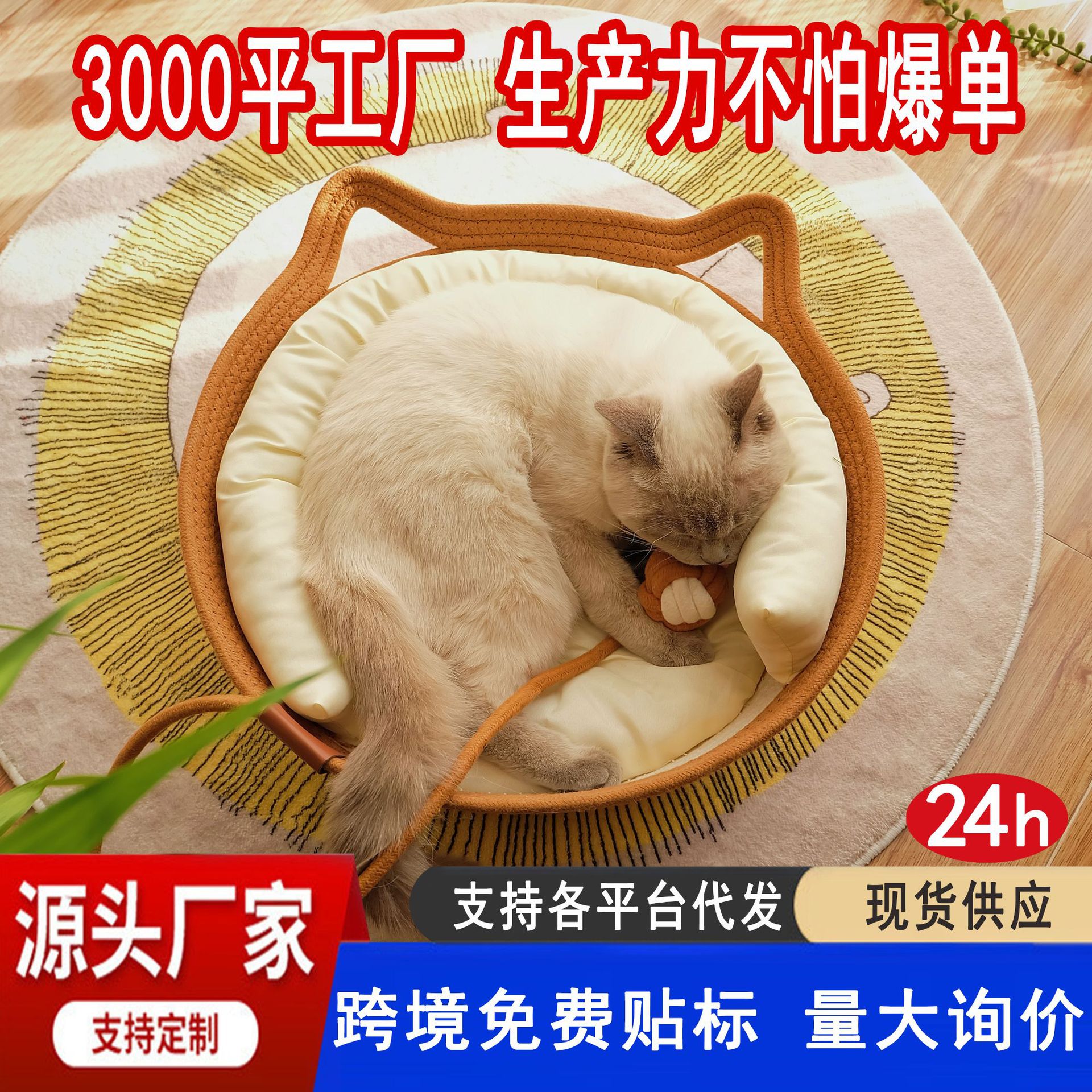 • 新款四季通用猫窝宠物窝编制猫窝透气狗狗窝宠物睡觉垫宠物用品