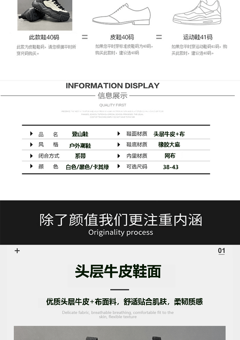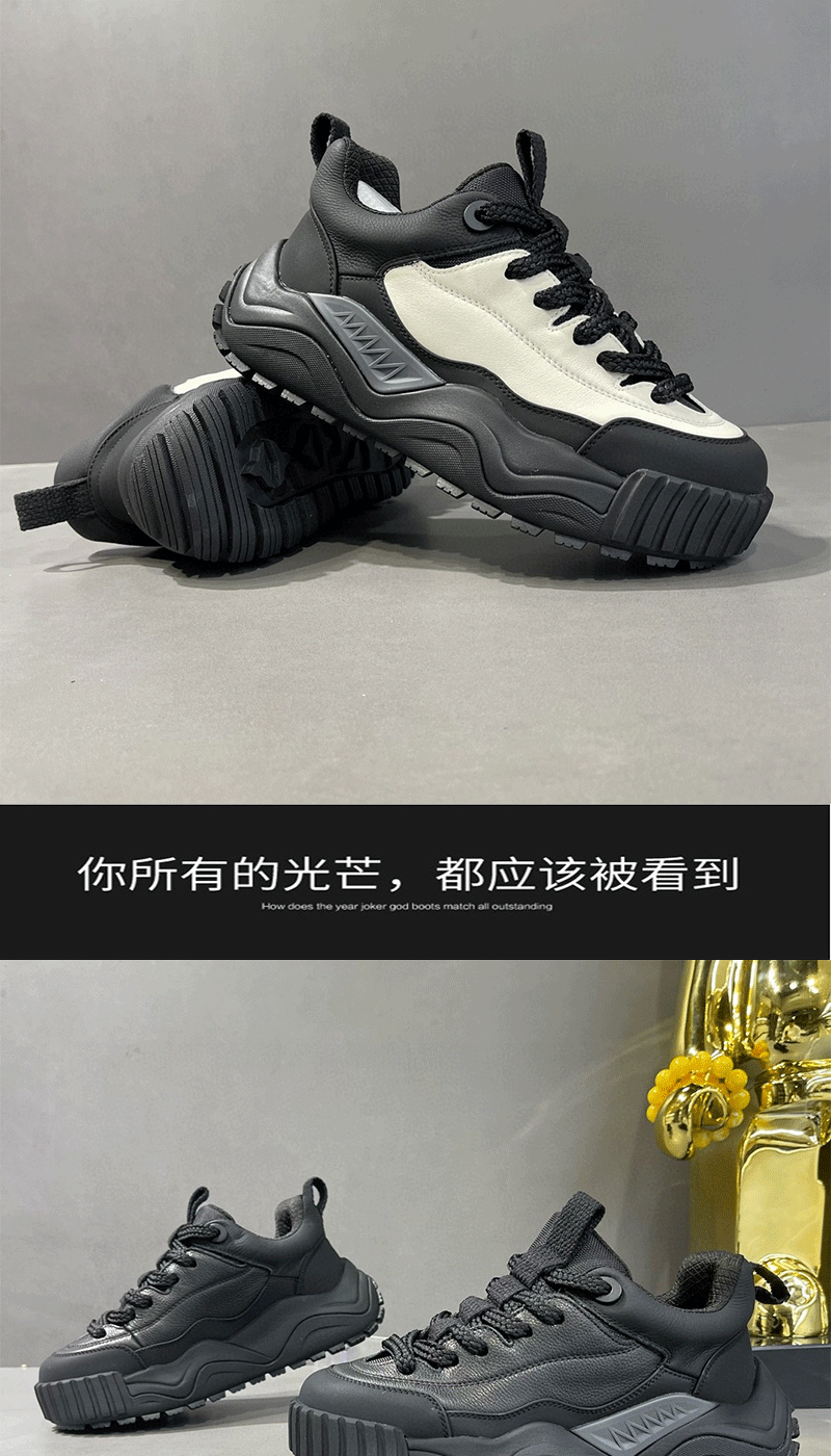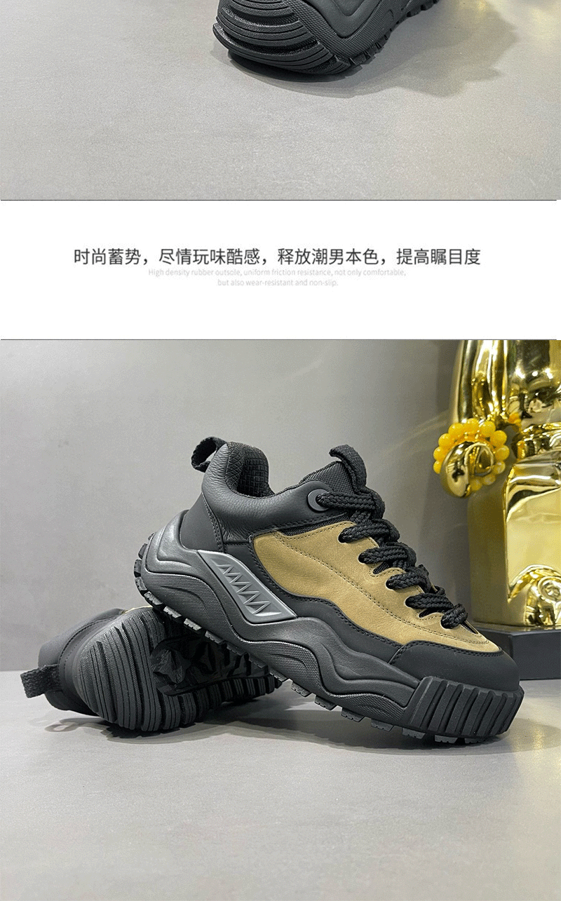 남성 신발 2024 가을 새로운 스타일 헤드 라인 소프트 가죽 유럽 역 야외 두꺼운 밑창 등산 신발 작업복 캐주얼 토레 신발 남성용스토어 가기