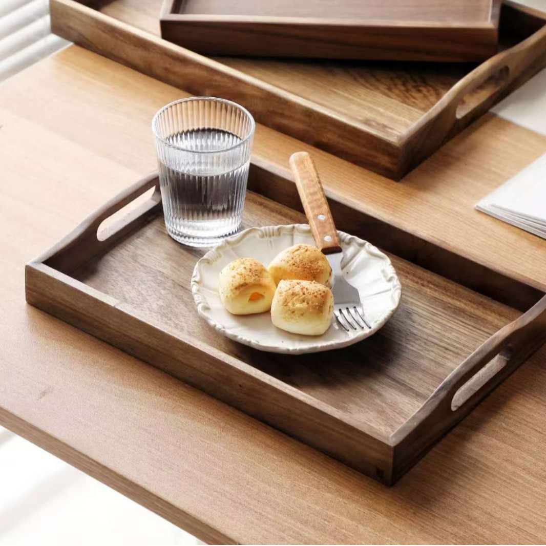 호두 직사각형 가정용 단단한 나무 트레이 차 세트 물 컵 저장 플레이트 나무 말린 과일 플레이트 호텔 레스토랑 디너 플레이트