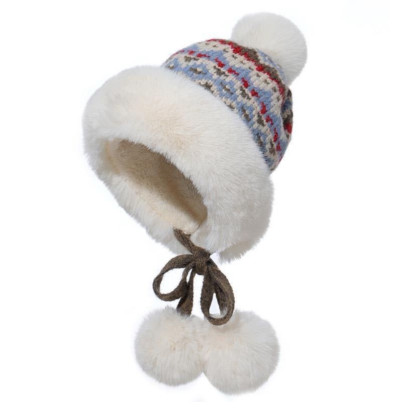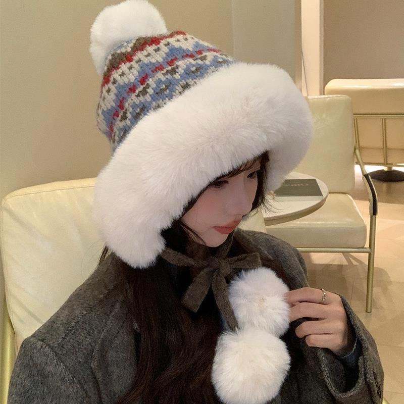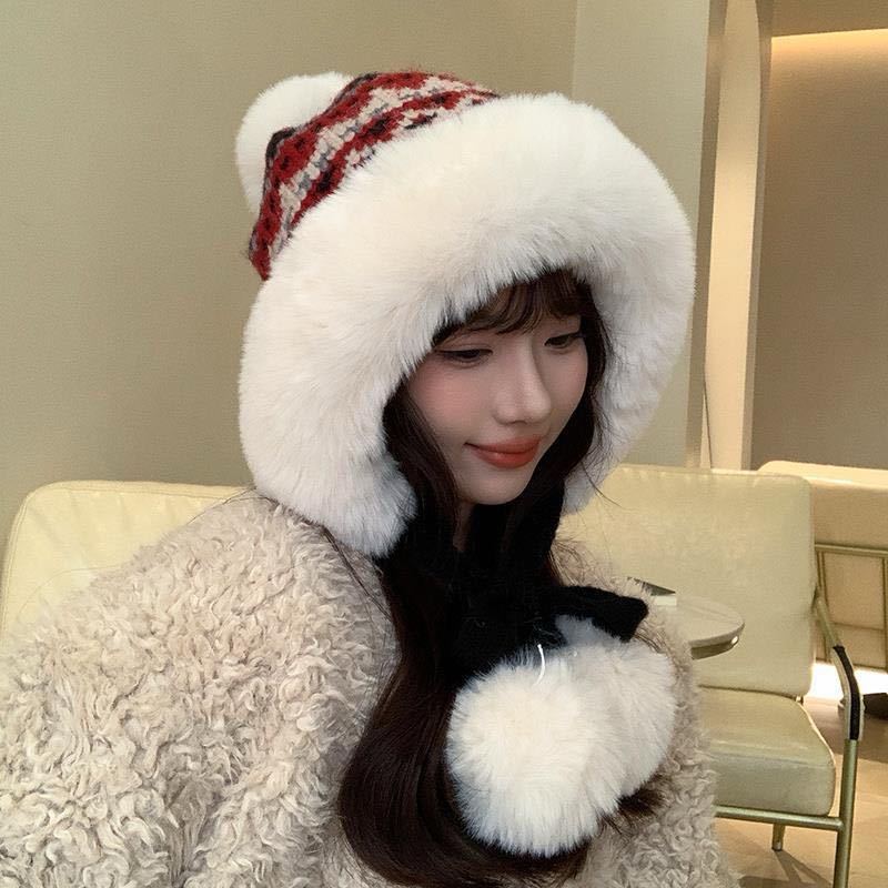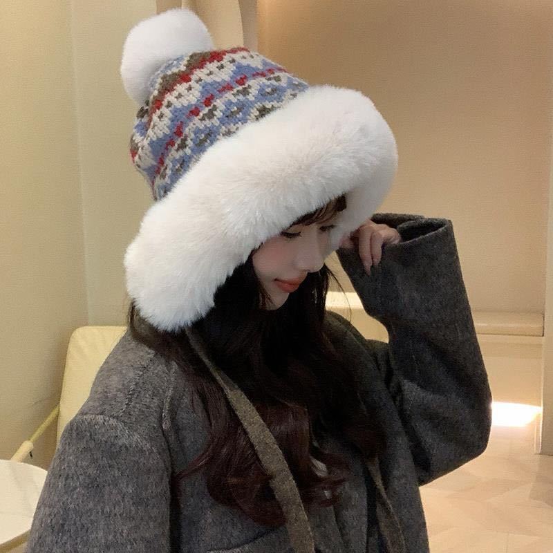 2024 겨울 봉제 Lei Feng 모자 어린이 얼굴 작은 두꺼운 따뜻한 승마 귀 보호 냉장 니트 울 모자스토어 가기