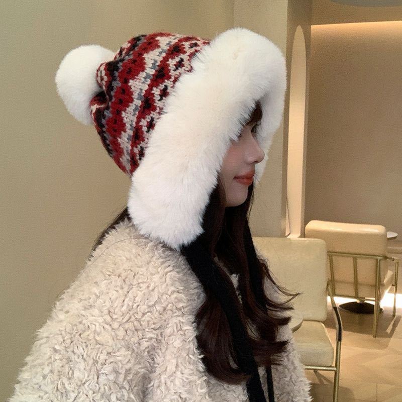 2024 겨울 봉제 Lei Feng 모자 어린이 얼굴 작은 두꺼운 따뜻한 승마 귀 보호 냉장 니트 울 모자