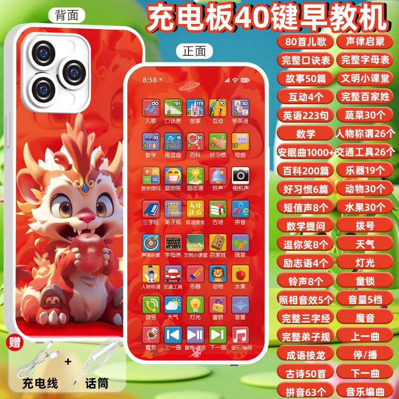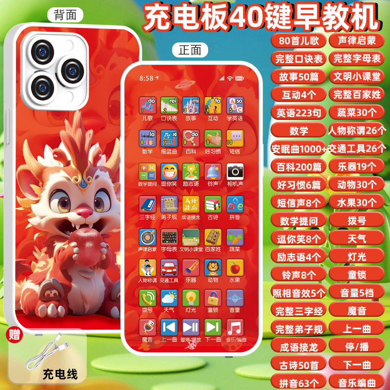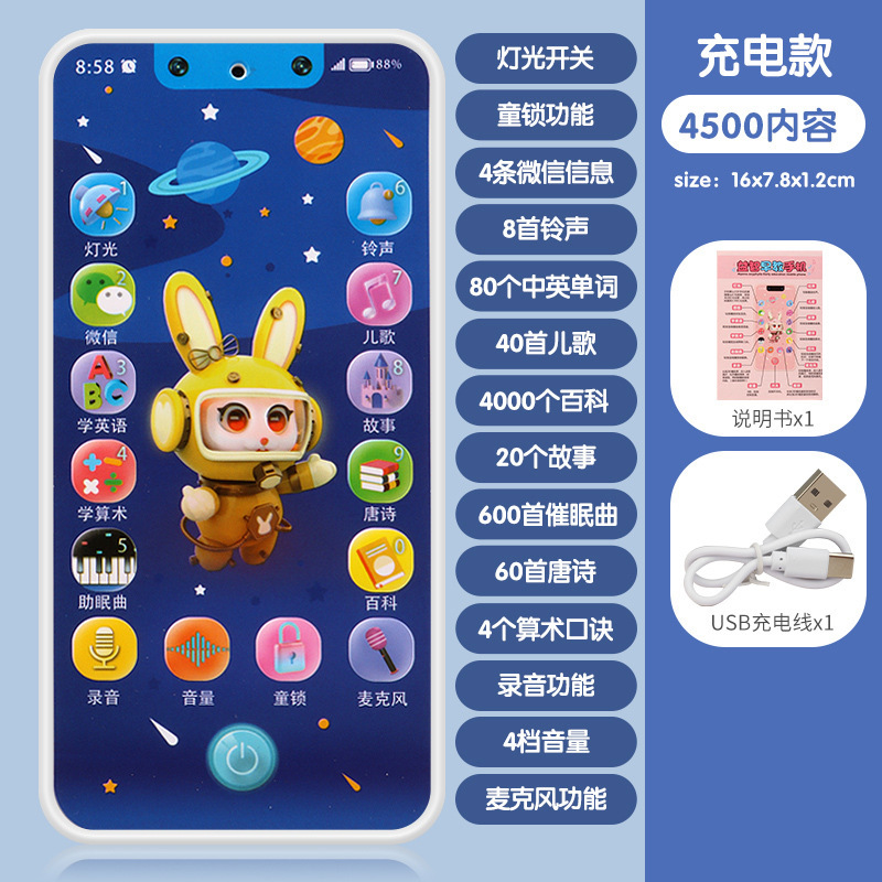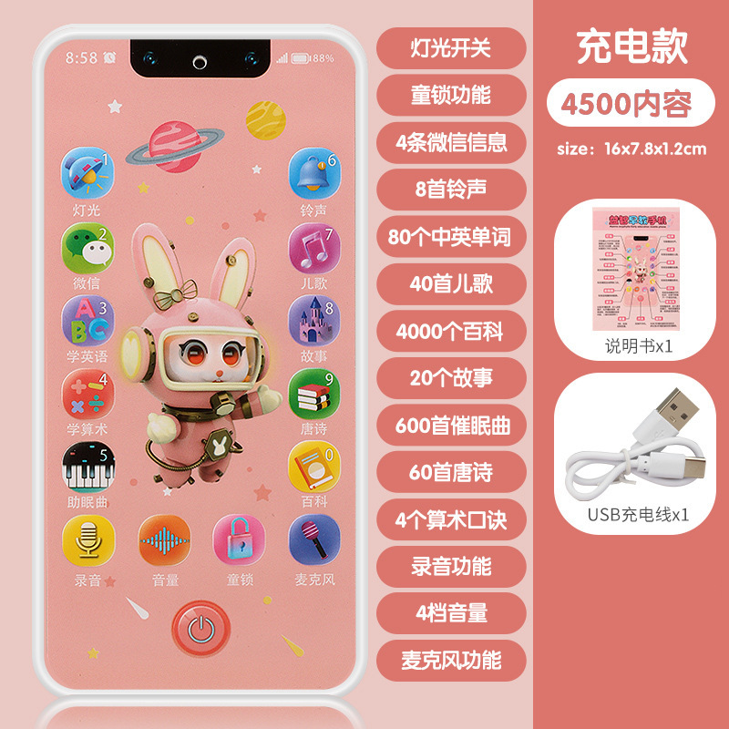 충전식 터치 스크린 다기능 조기 교육 기계 시뮬레이션 장난감 아기 교육 어린이 소년과 소녀 전화 베이비 바이트