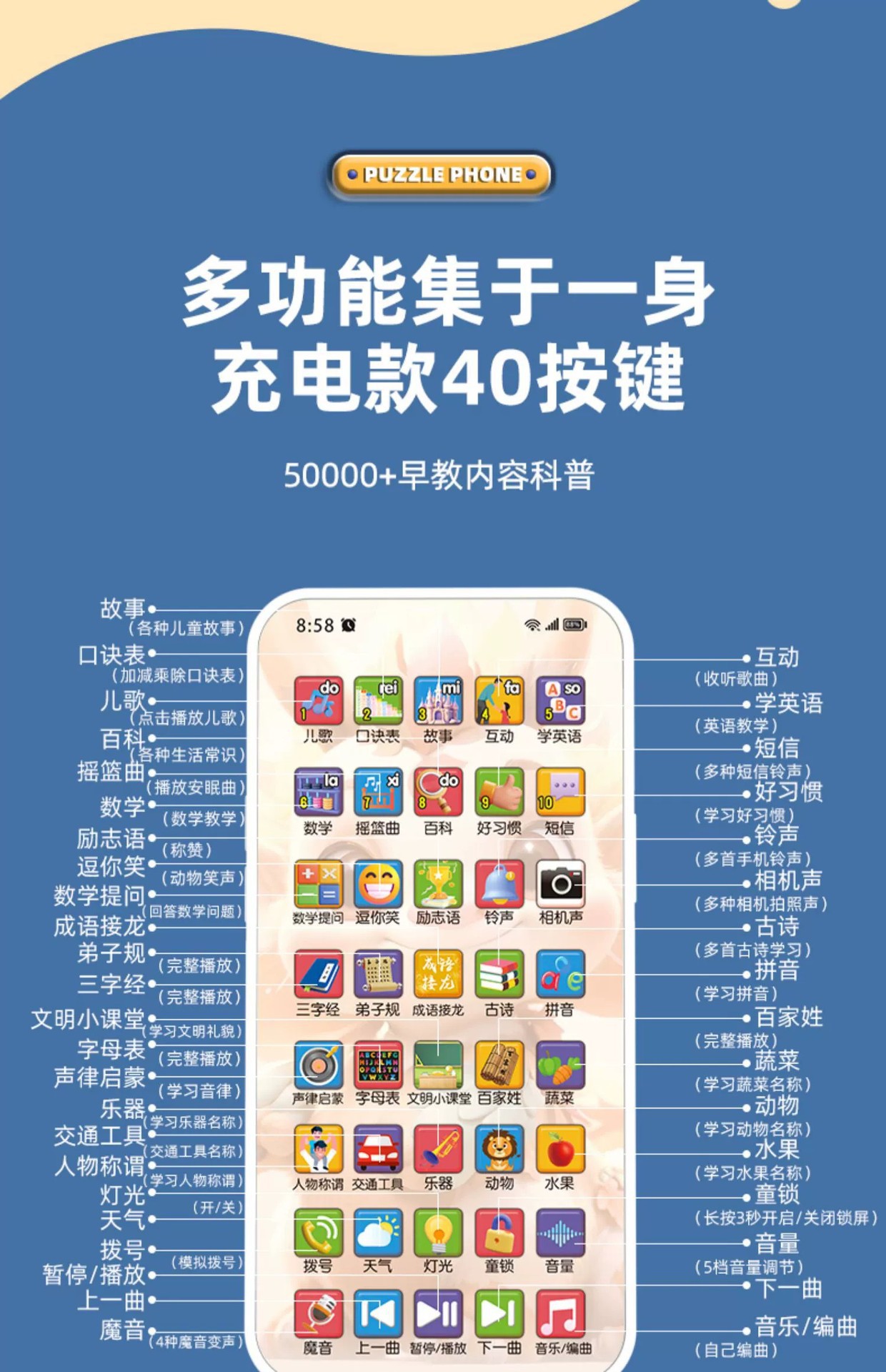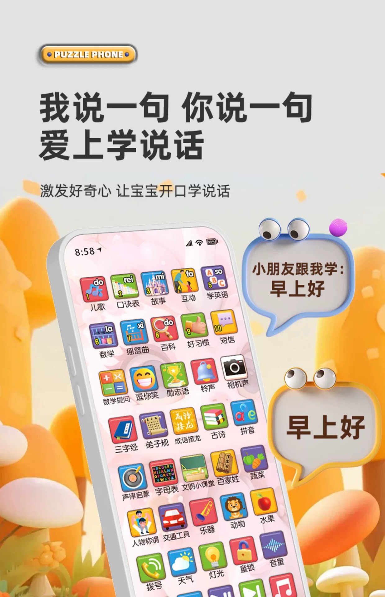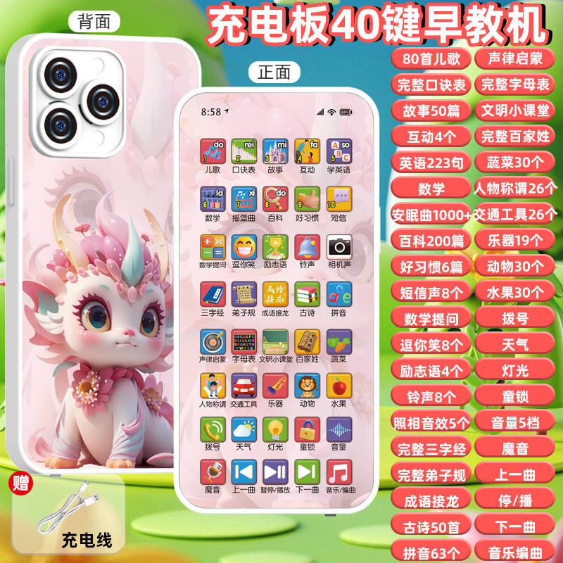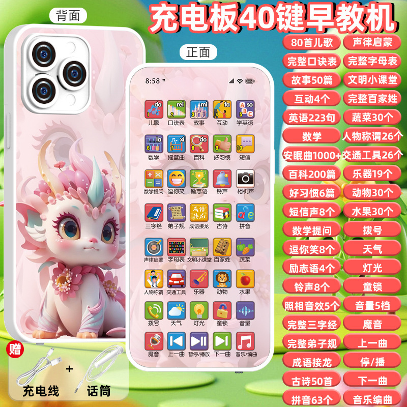충전식 터치 스크린 다기능 조기 교육 기계 시뮬레이션 장난감 아기 교육 어린이 소년과 소녀 전화 베이비 바이트스토어 가기