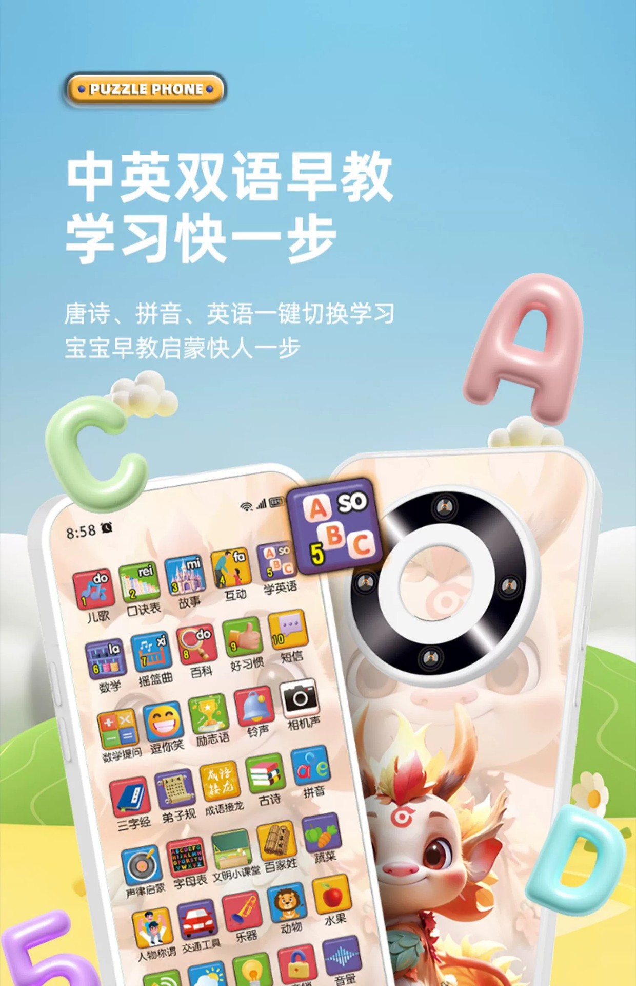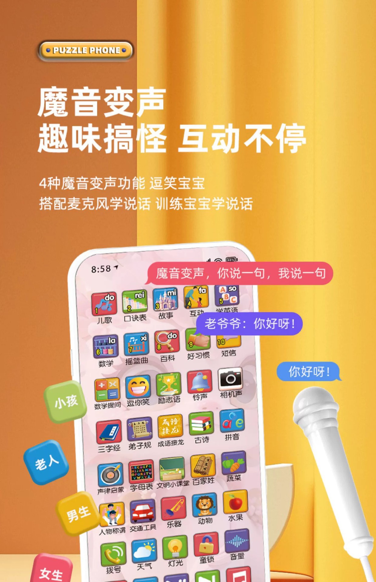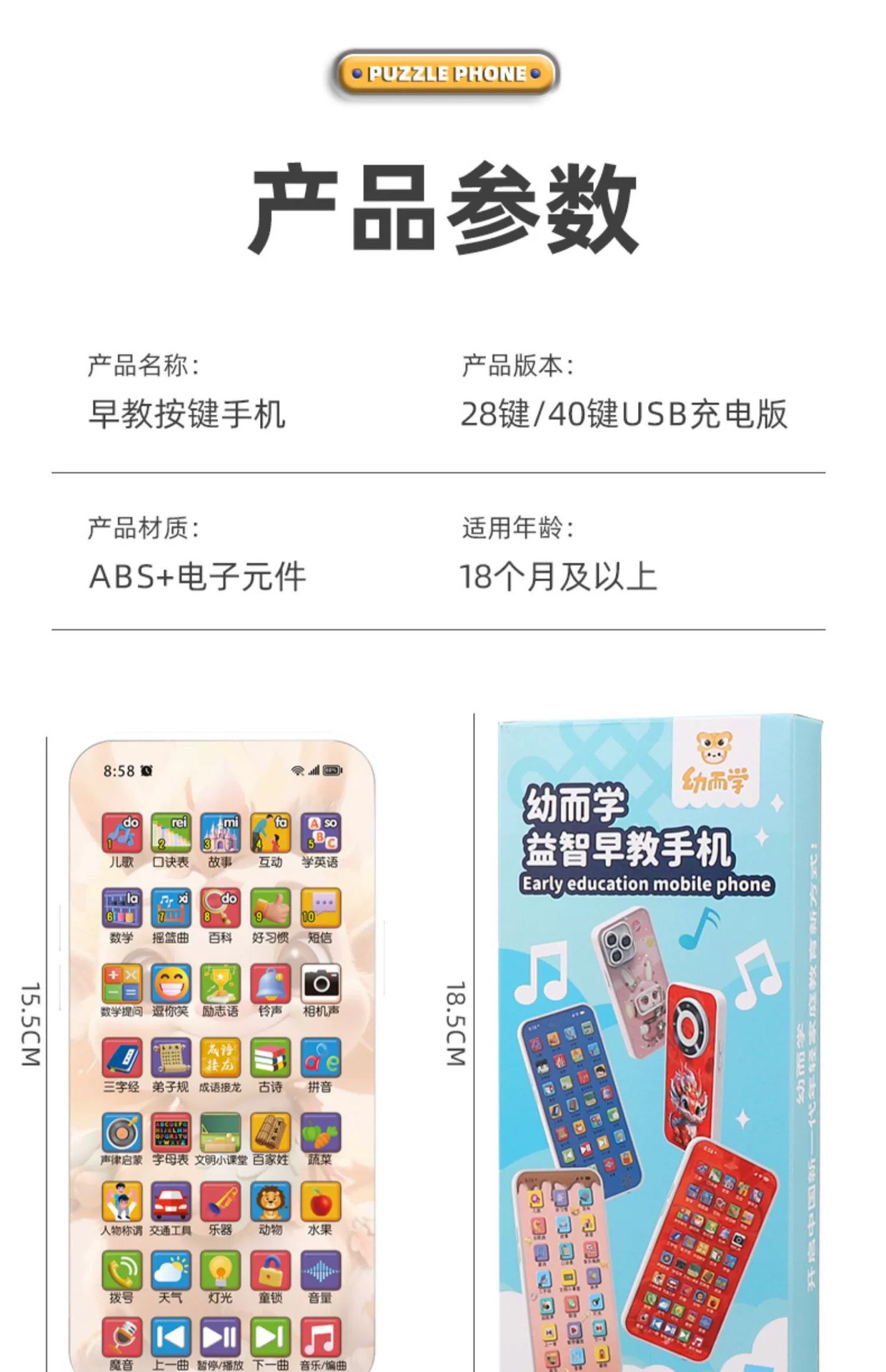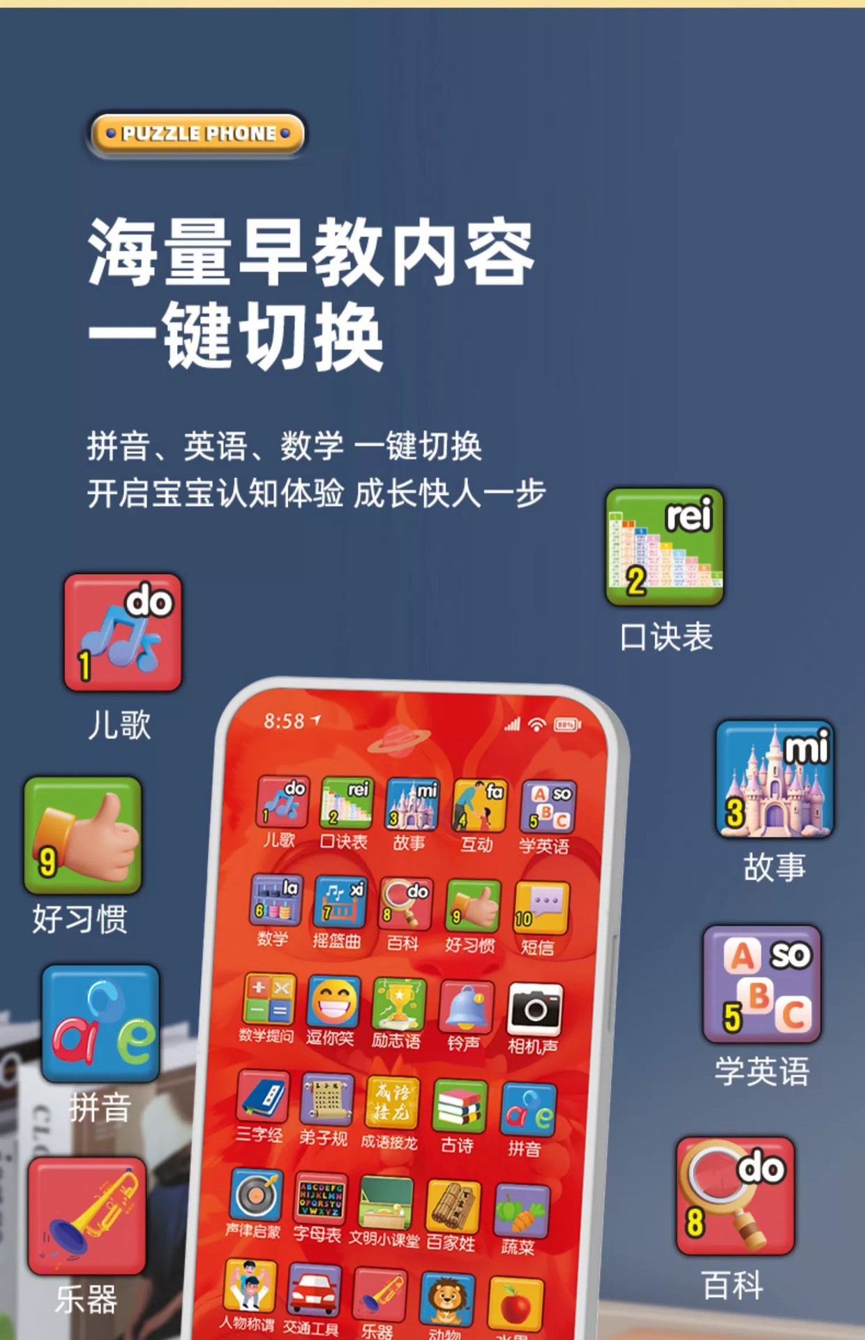 충전식 터치 스크린 다기능 조기 교육 기계 시뮬레이션 장난감 아기 교육 어린이 소년과 소녀 전화 베이비 바이트스토어 가기