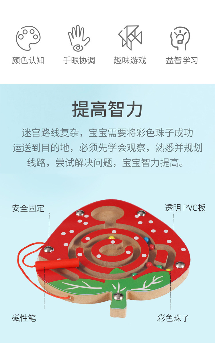 나무 자기 펜 미로 어린이 자기 구슬 유치원 선물 어린이 교육 조기 교육 나무 장난감스토어 가기
