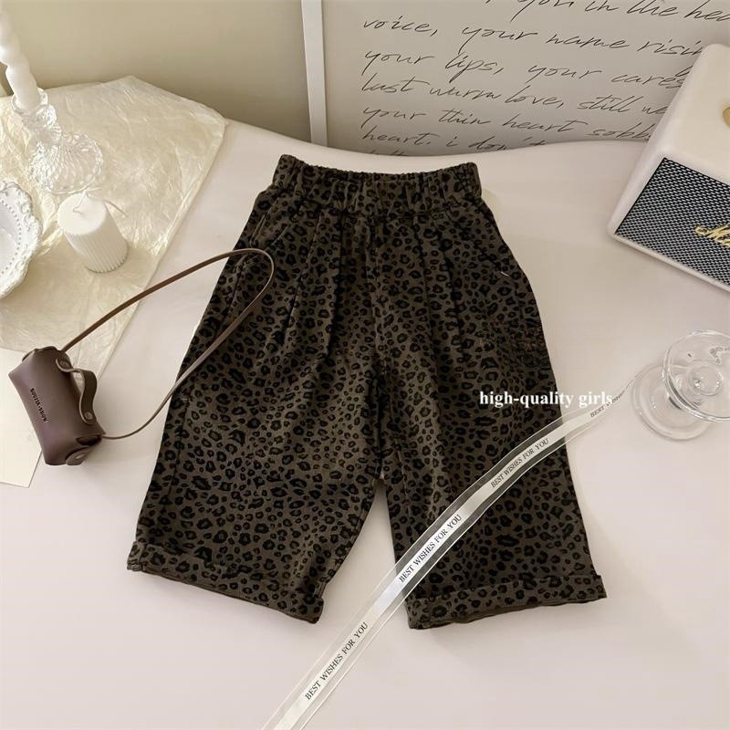 한국 스타일 봄 가을 2025년 가을 신상 커피색 후드티 여아용 레오파드 프린트 캐주얼 팬츠 투피스 도매