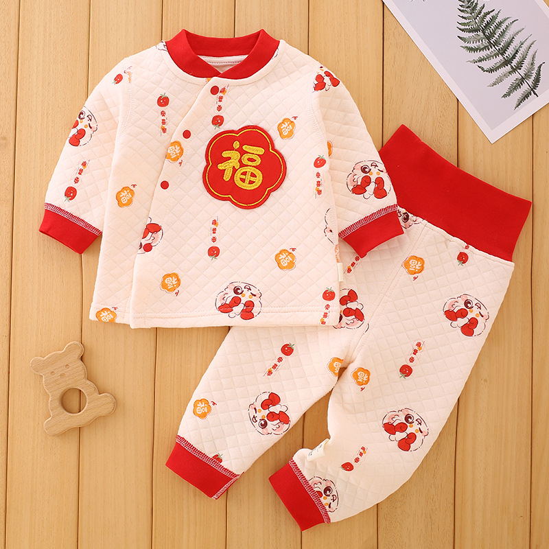 아기옷, 신생아 가을 겨울 아우터, 스플릿 보온 속옷, 아기 잠옷 투피스 세트, 가을 옷과 긴 바지 세트