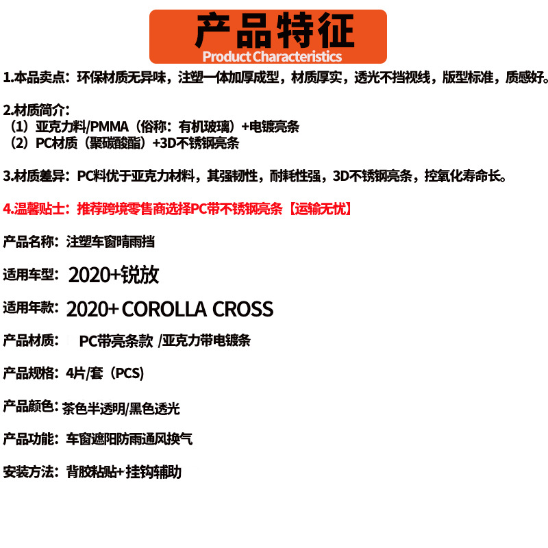 • 토요타 루이 윈도우 레인 쉴드 코롤라 크로스 윈도우 바이저