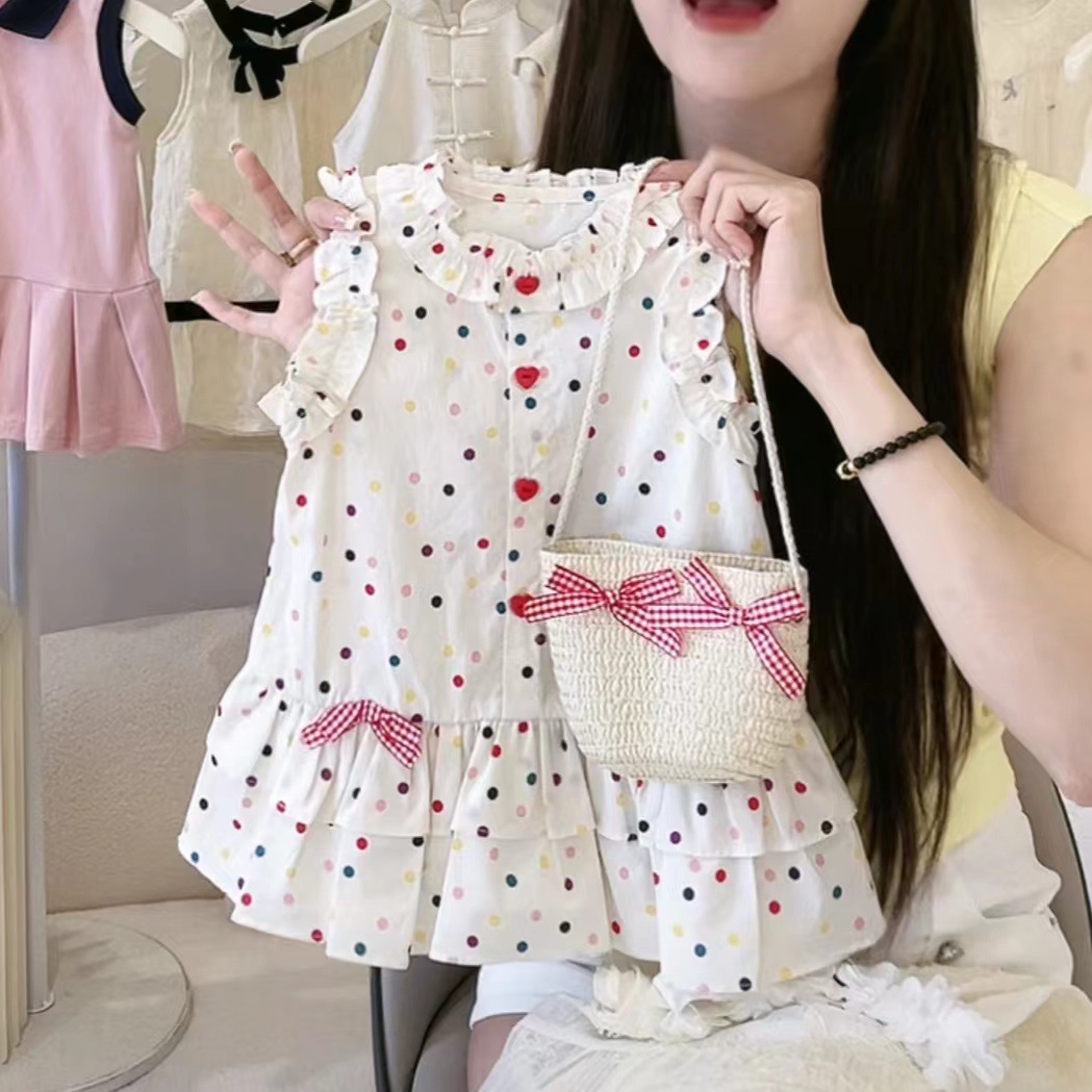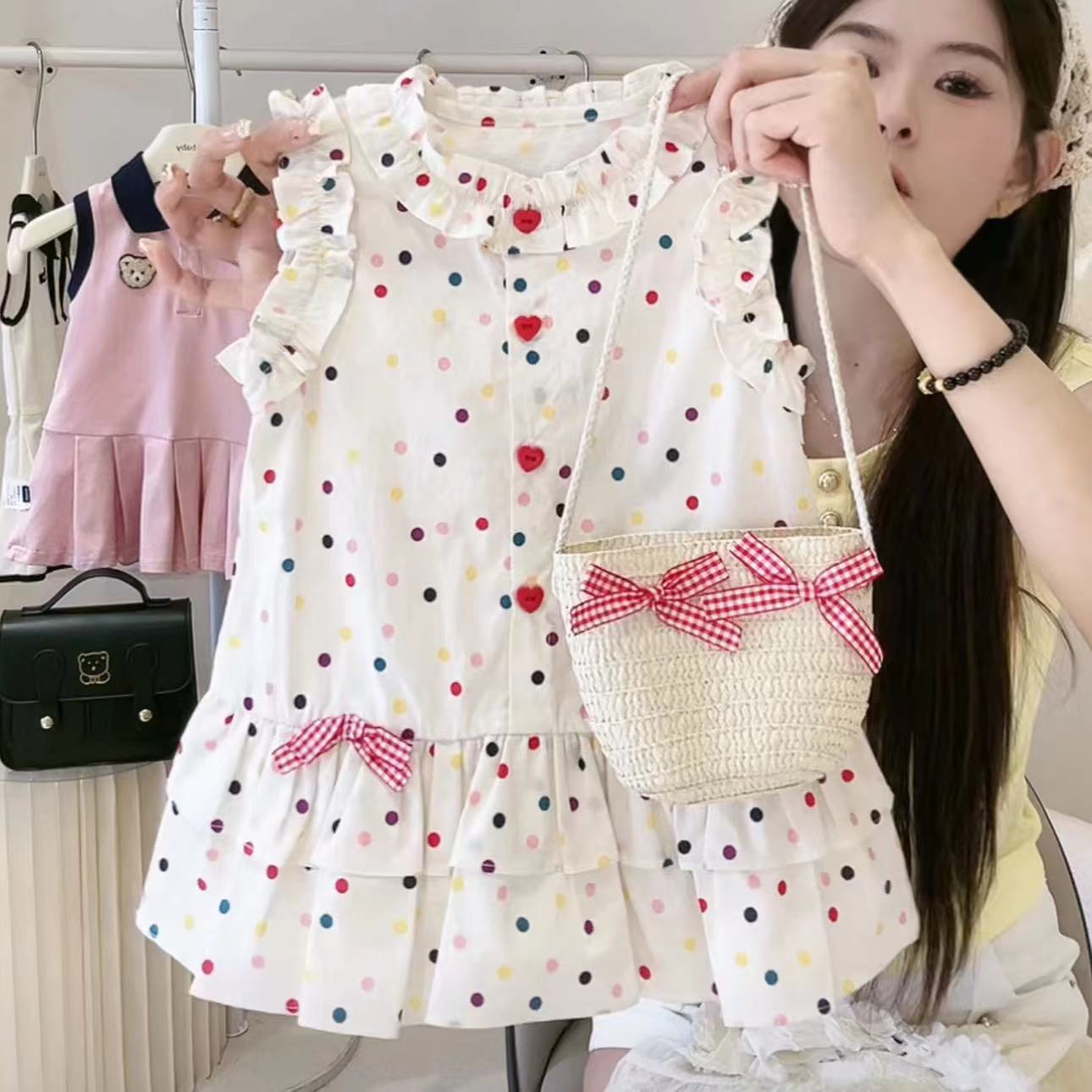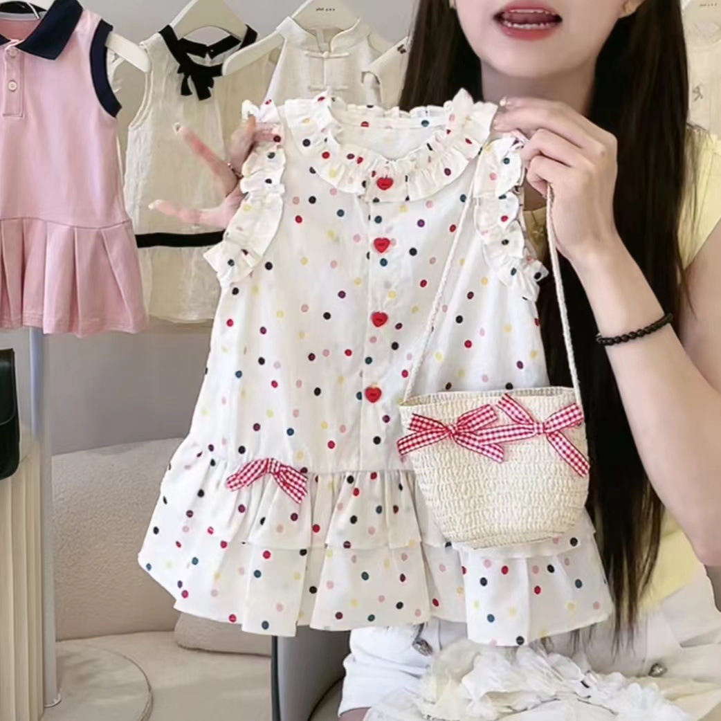 어린이 의류 소녀 여름 새로운 컬러 웨이브 포인트 스커트 아기 외국 스타일 원피스 레이스 유행 조끼 치마 조수 도매