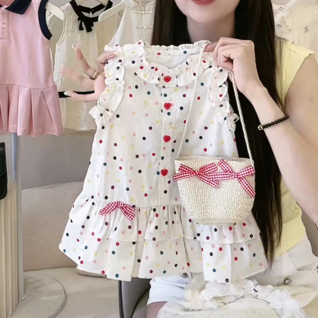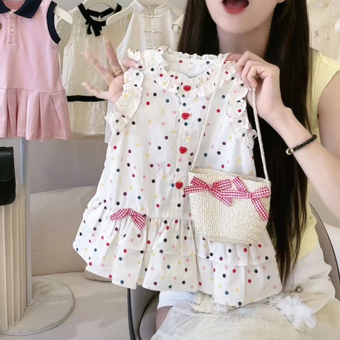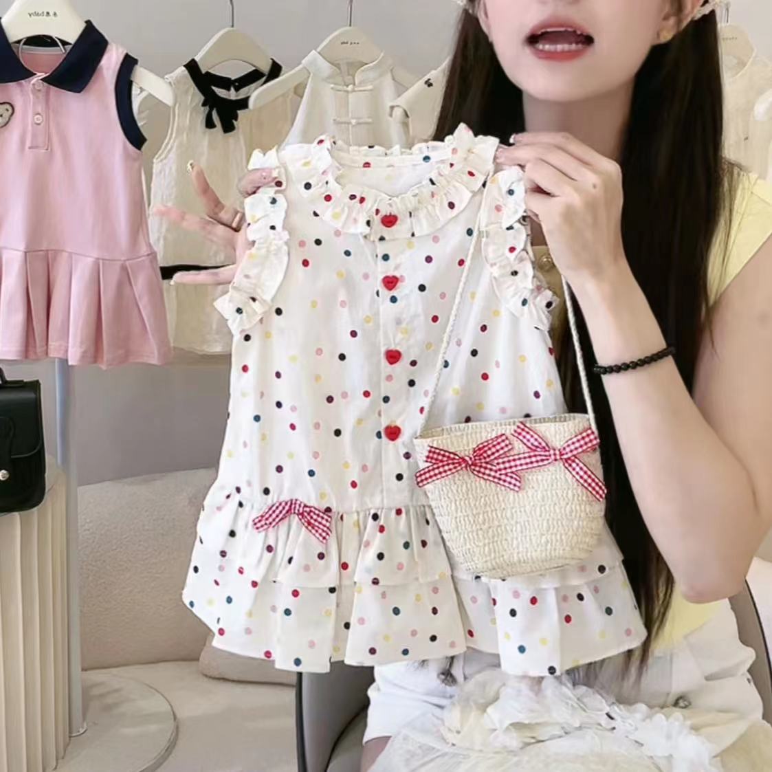 어린이 의류 소녀 여름 새로운 컬러 웨이브 포인트 스커트 아기 외국 스타일 원피스 레이스 유행 조끼 치마 조수 도매