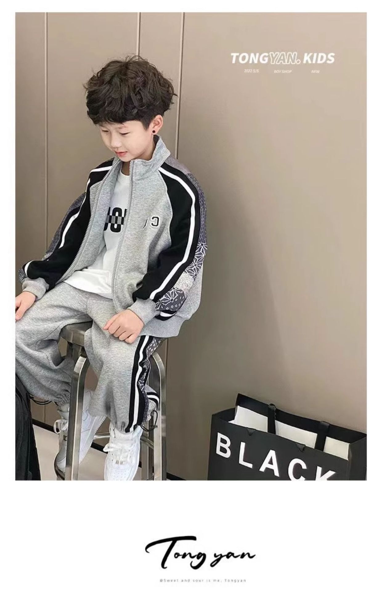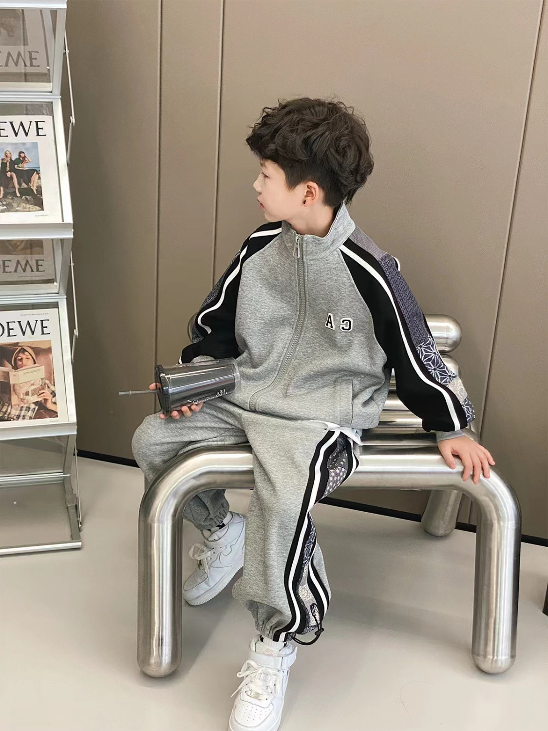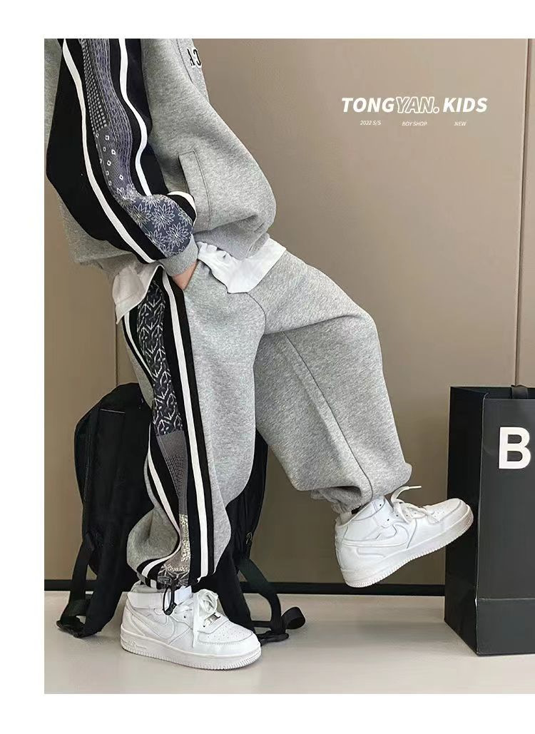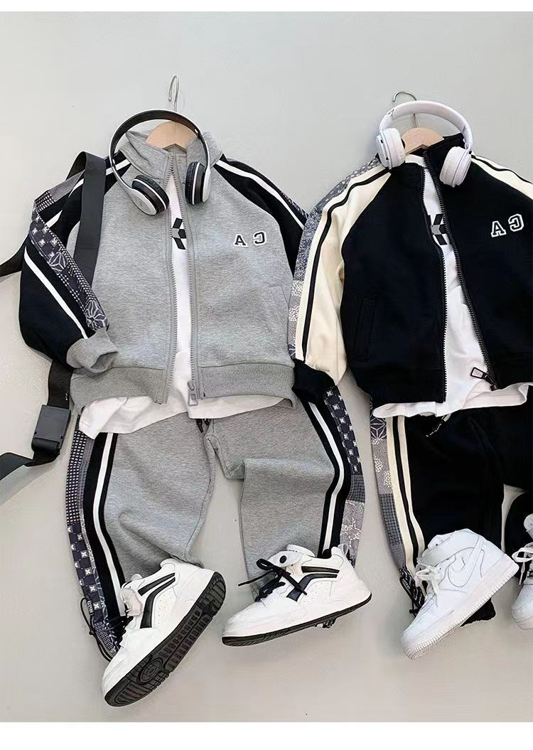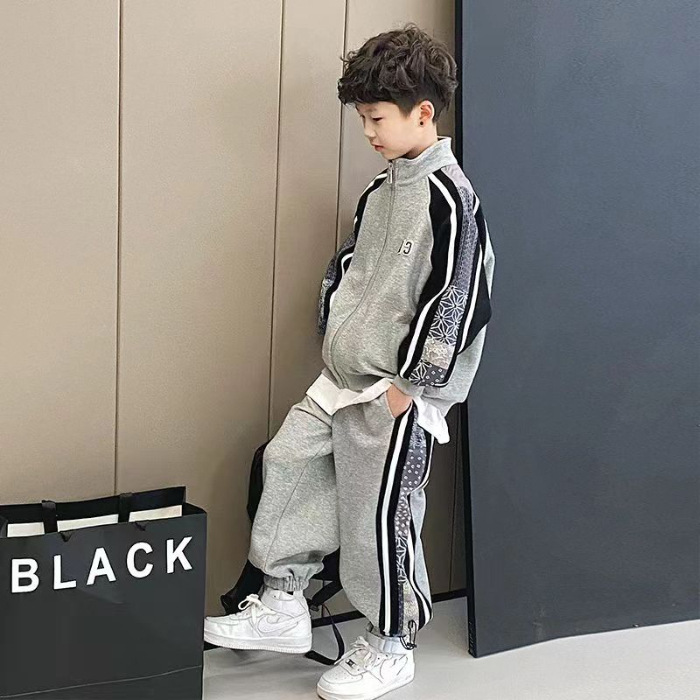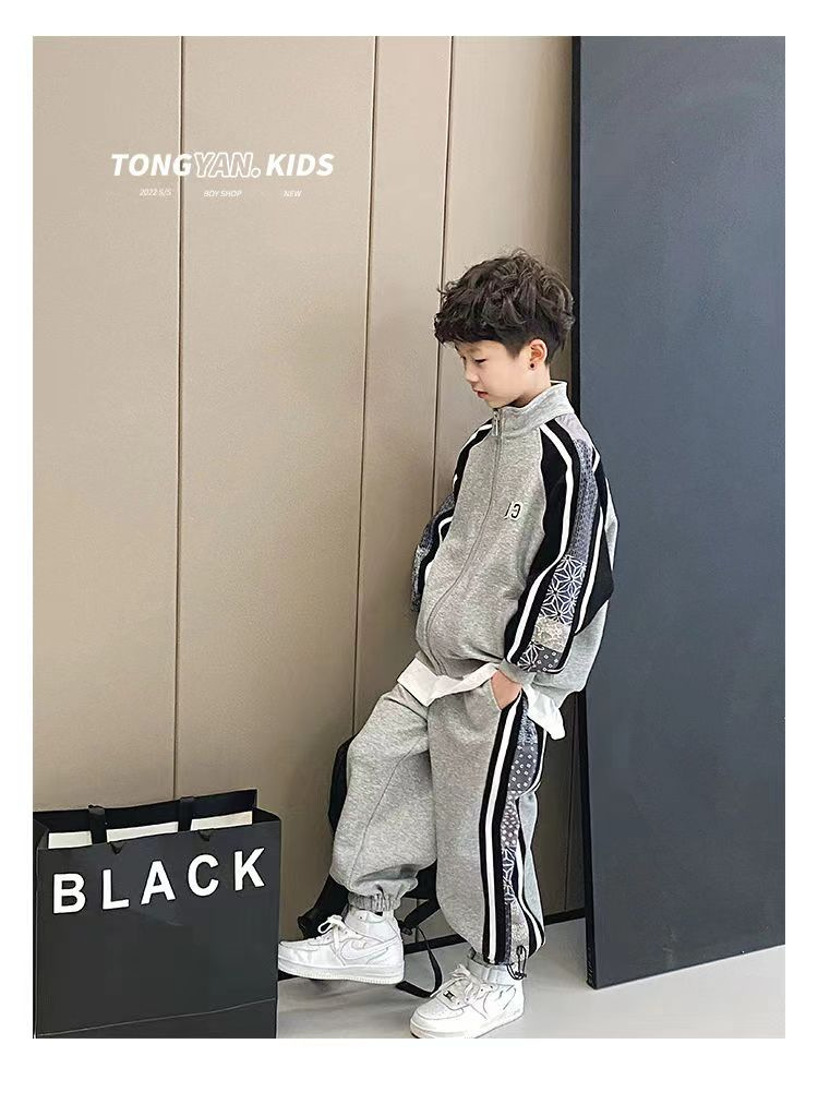소년 한국 스타일 프라이드 스트리트 스포츠 큰 아이들을위한 세트 가을 새로운 컬러 매칭 올매치 세련된 긴 소매 투피스 세트스토어 가기