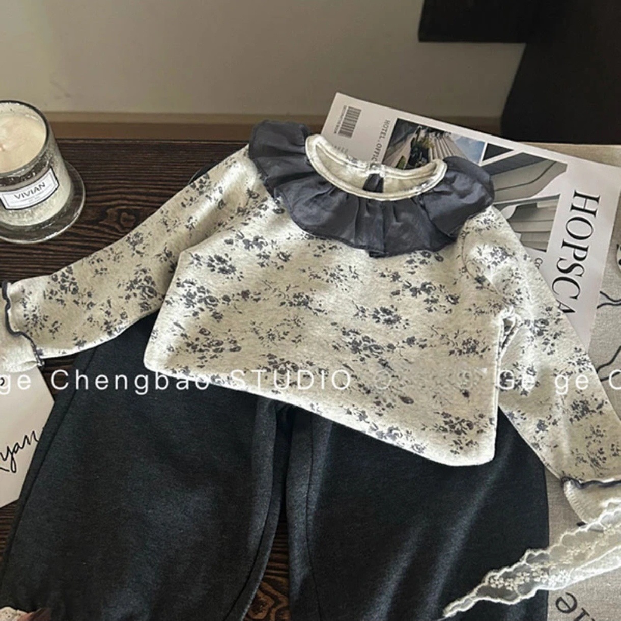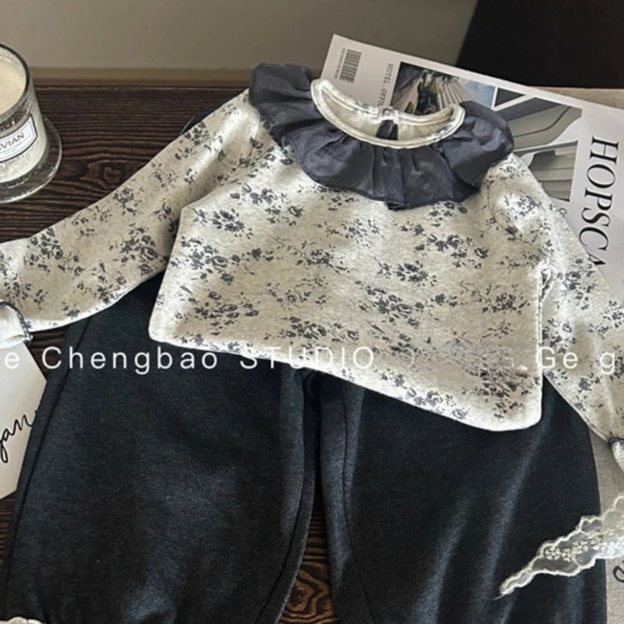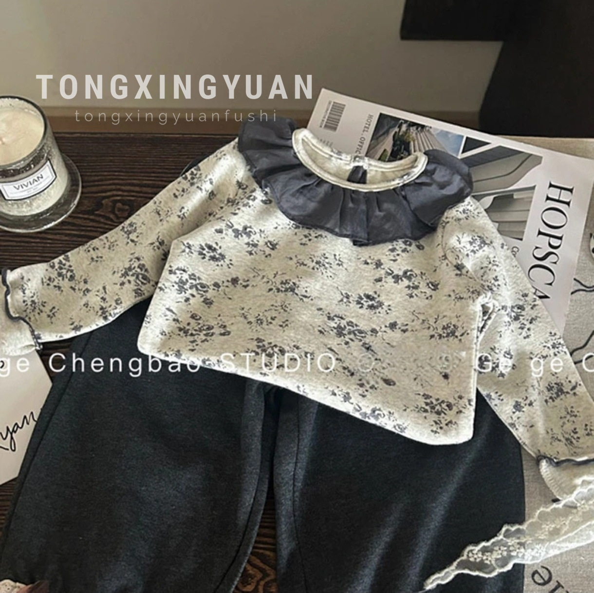소녀 모리 꽃 최고 가을 세트 새로운 한국 어린이 착용 아기 소녀 봄과 가을 두 조각 유행 도매스토어 가기