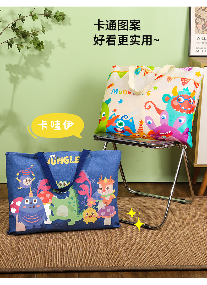 초대형 두꺼운 귀여운 만화 유치원 퀼트 보관 가방 핸드백 어린이 방수 퀼트 이동 더플 가방