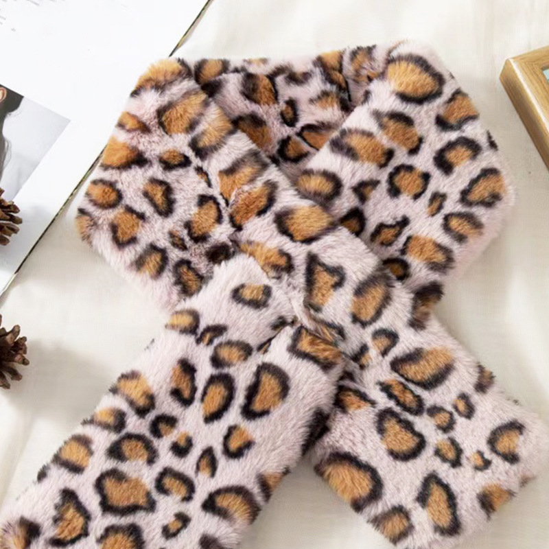 인터넷 연예인 봉제 스카프 여성의 겨울 모방 렉스 토끼 모피 두꺼운 따뜻한 목 보호 스카프 레오파드 무늬 간단한 크로스 모피 칼라