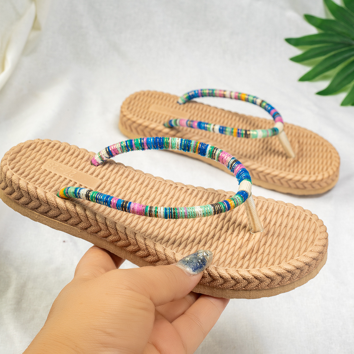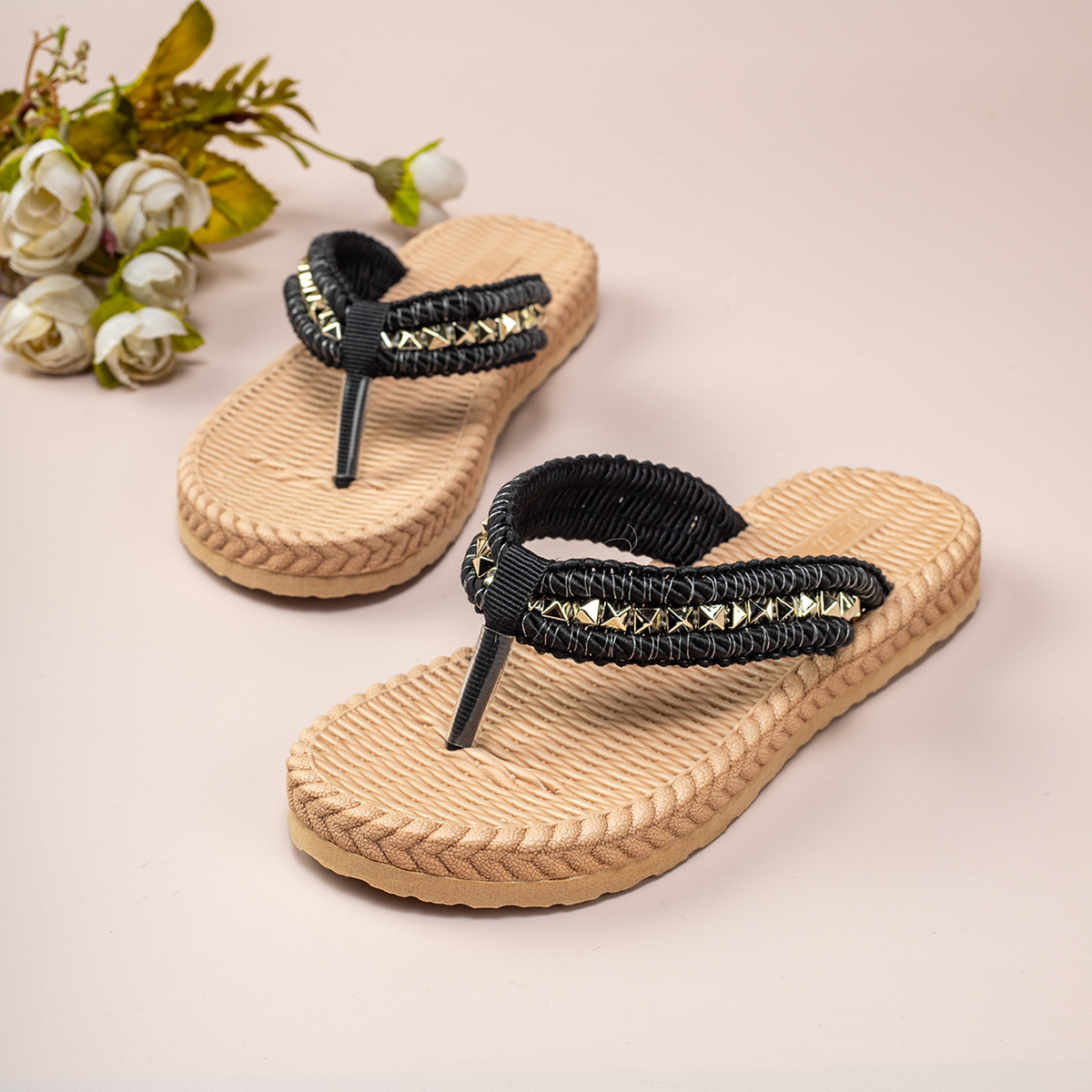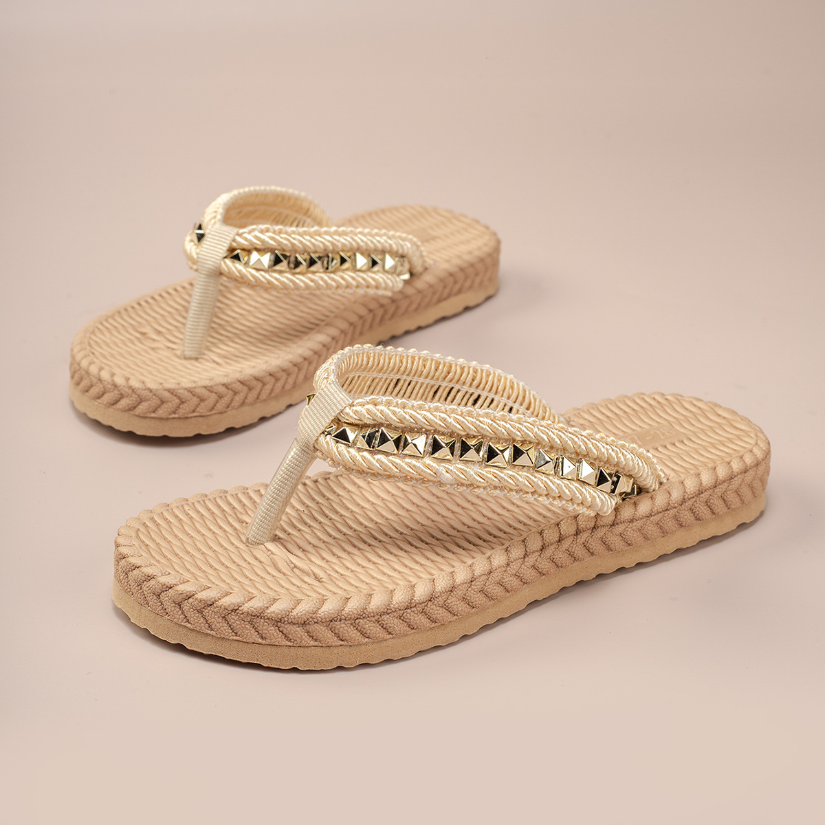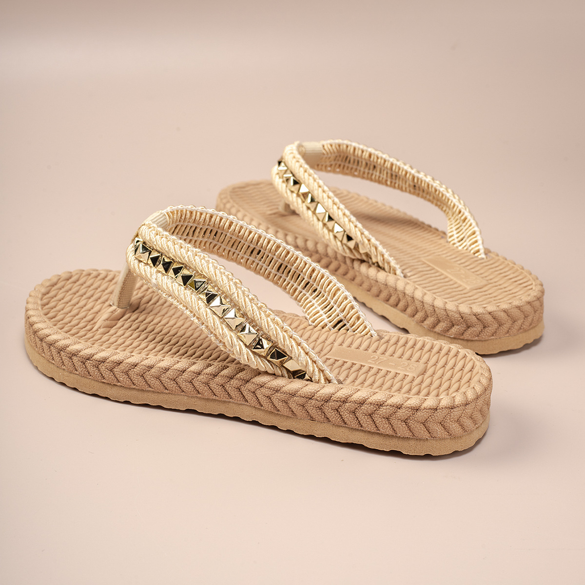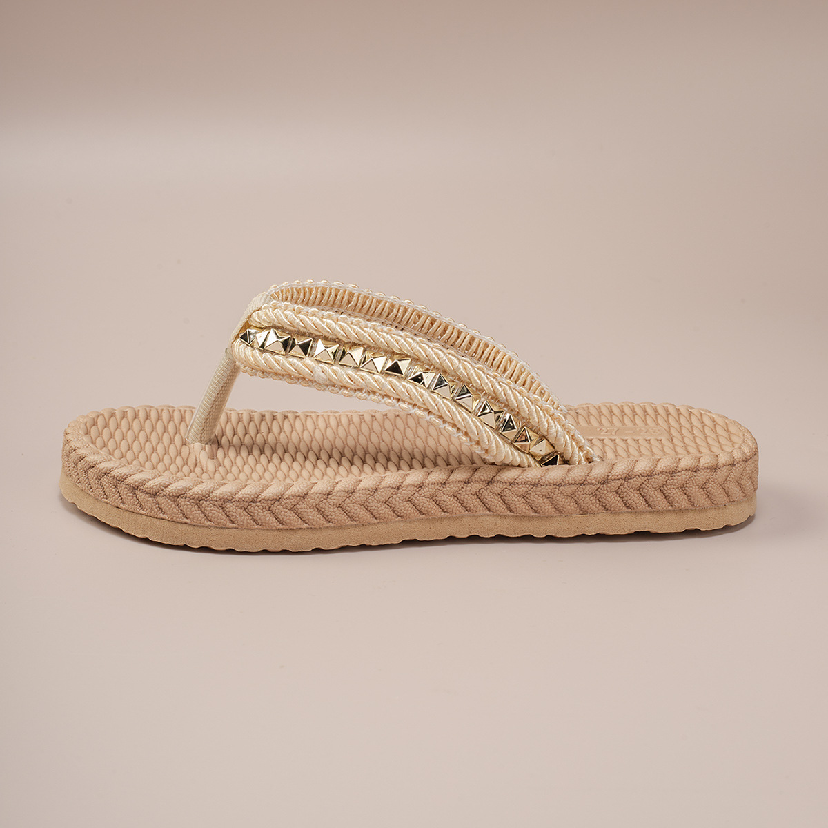 플랫 샌들과 슬리퍼 소녀 2024 여름 새로운 유럽과 미국의 대외 무역 플러스 사이즈 플립 플롭 패션 편안한 린넨 모래스토어 가기