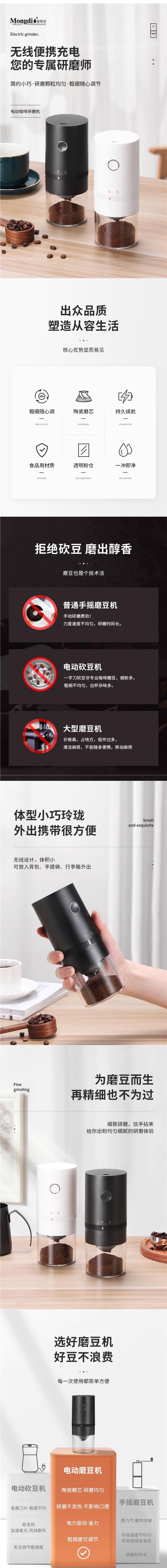 • 전동 그라인더 화이트 [세라믹 그라인딩 코어, 무선 및 편리함]❤무료 청소용 브러시와 충전 케이블·