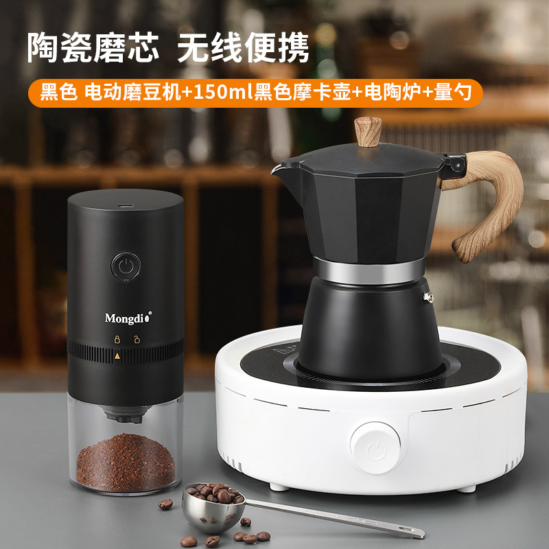• 전기 그라인더 블랙 + 블랙 모카 포트 150ml + 원형 전기 세라믹 스토브·
