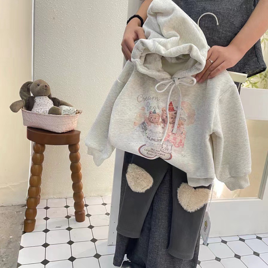 아기 소녀 스웨터 세트 2024 겨울 서양식 어린이 겨울 캐주얼 세트 소녀 기모 옷 도매스토어 가기