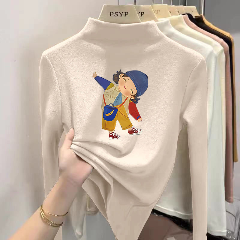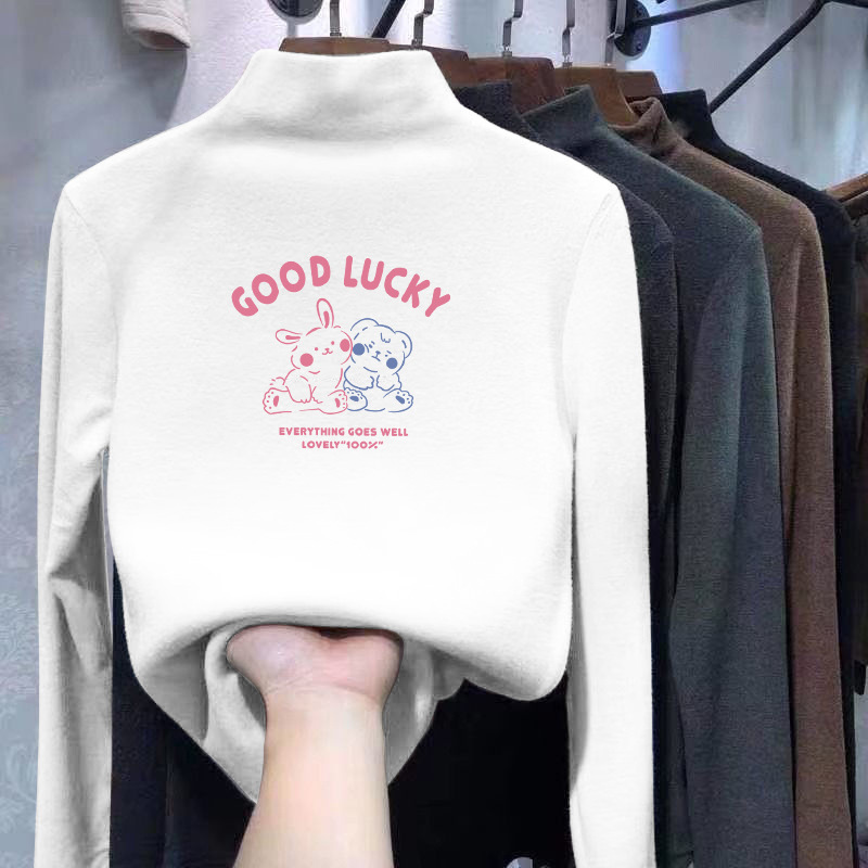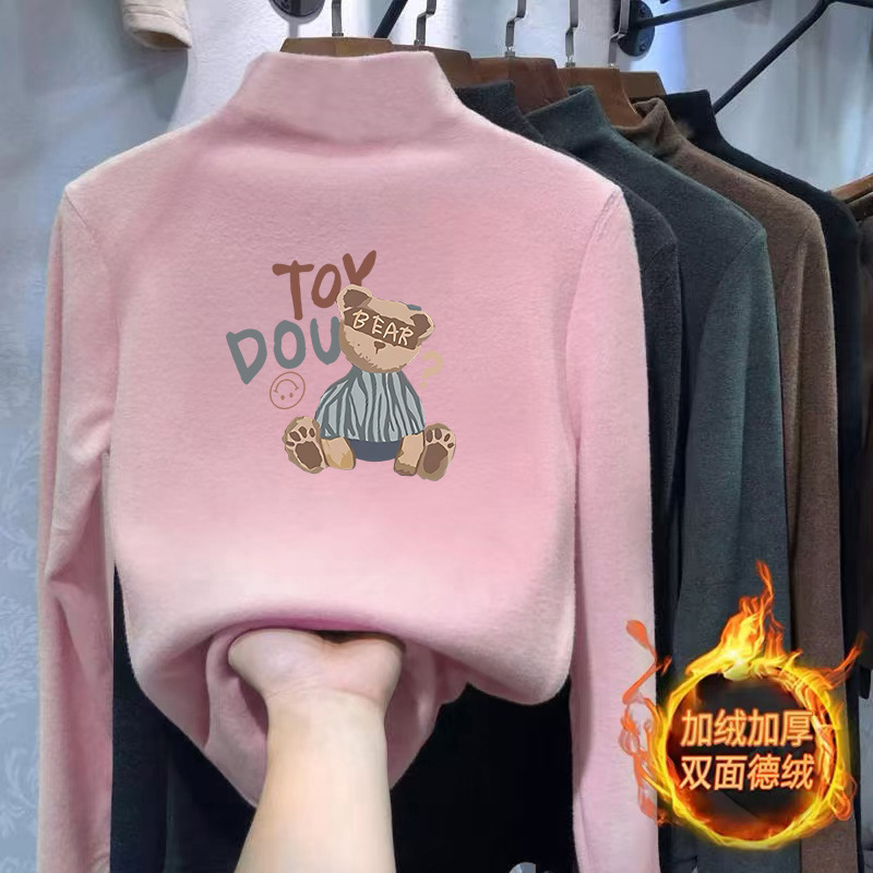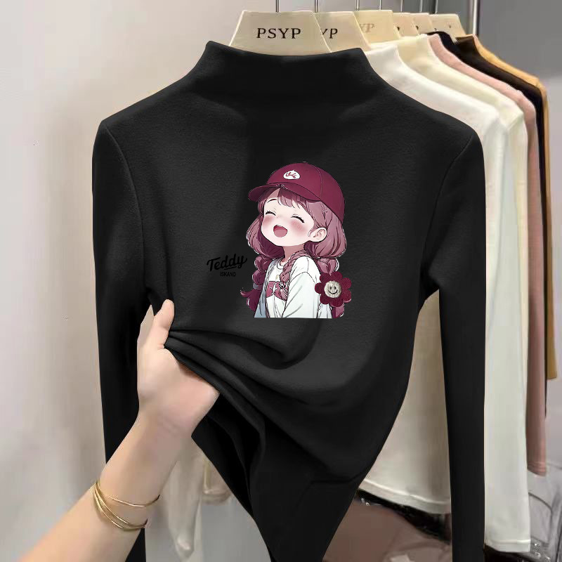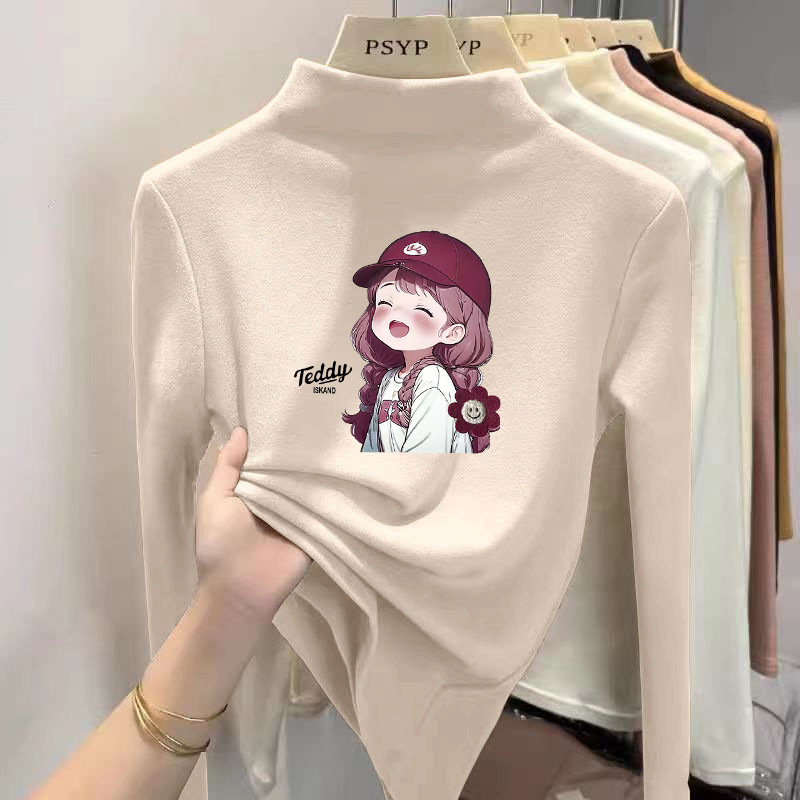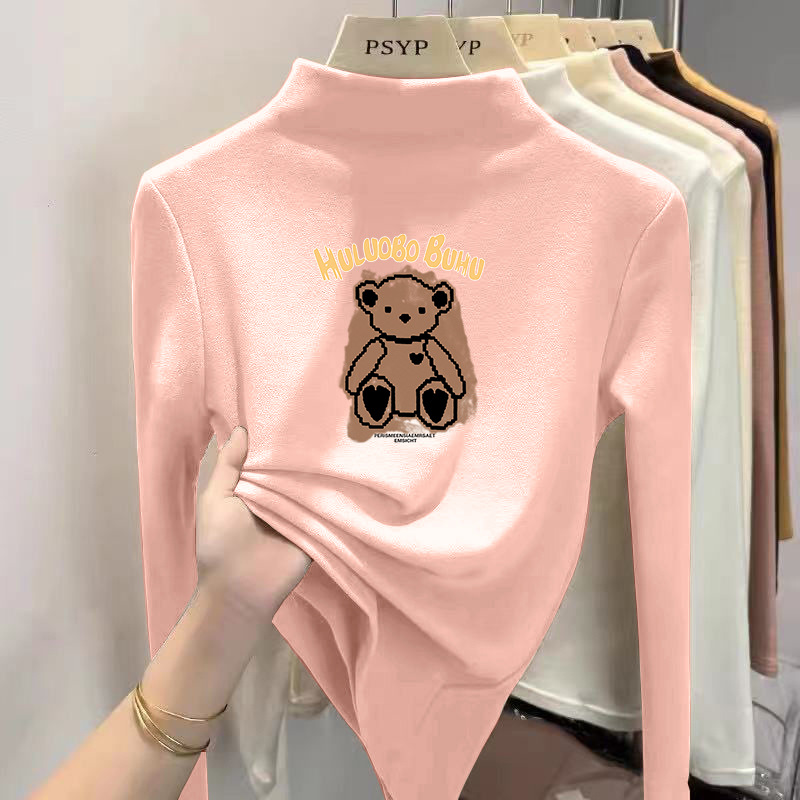 여자 벨벳 세미 하이 칼라 긴팔 티셔츠베이스 셔츠 가을 겨울 새로운 어린이 캐주얼 인테리어 의류 스타일 티셔츠