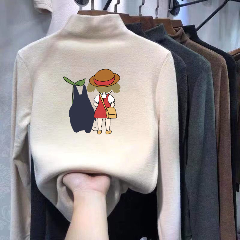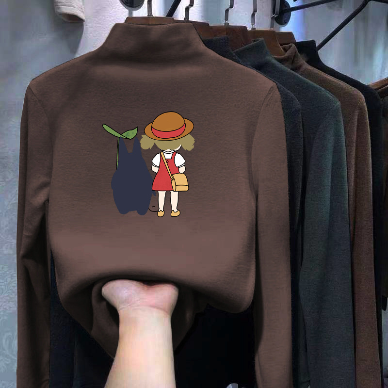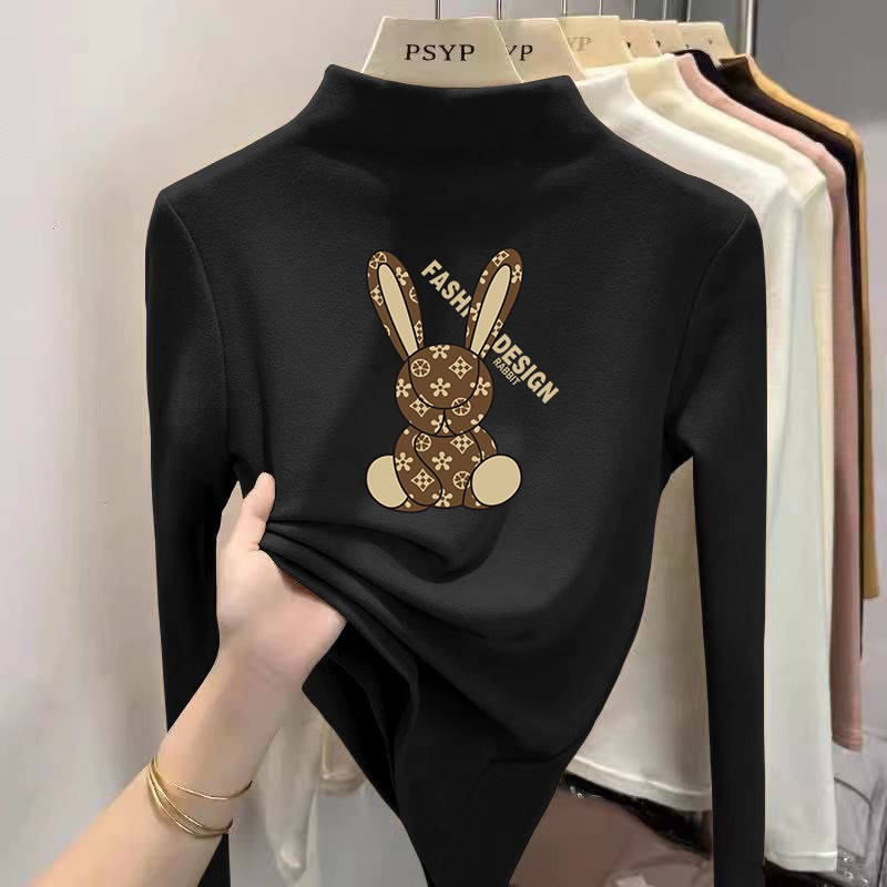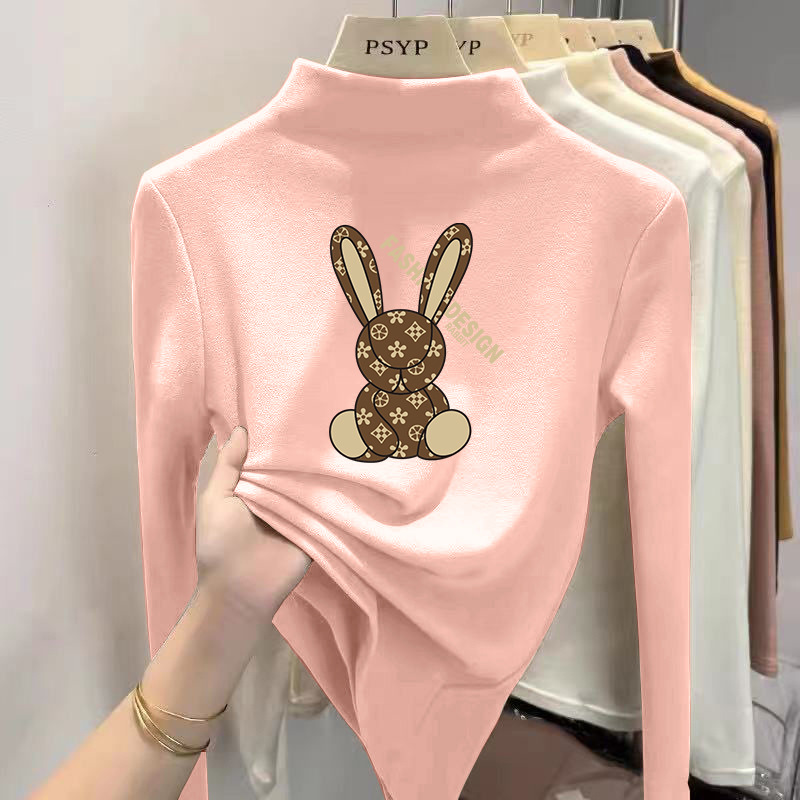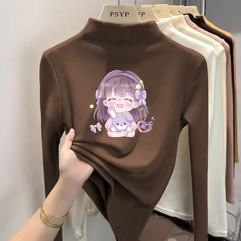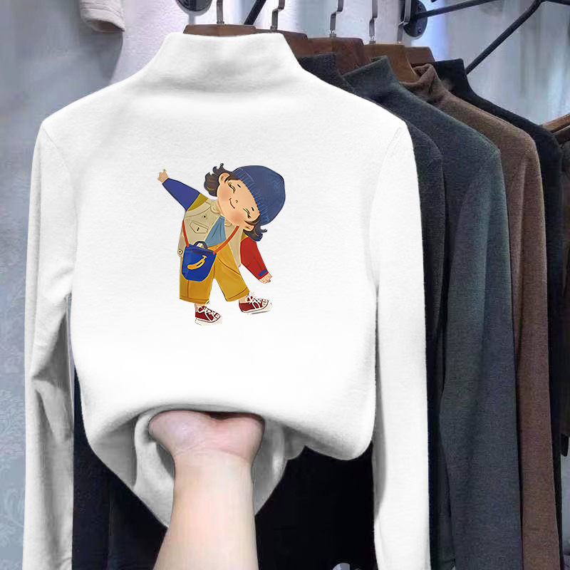 여자 벨벳 세미 하이 칼라 긴팔 티셔츠베이스 셔츠 가을 겨울 새로운 어린이 캐주얼 인테리어 의류 스타일 티셔츠