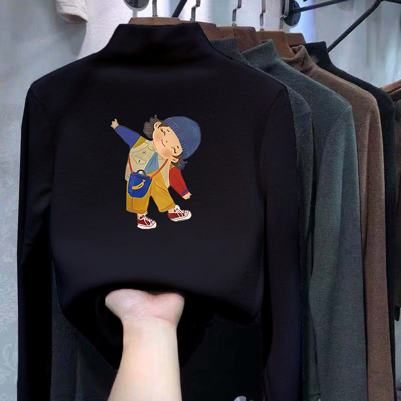 여자 벨벳 세미 하이 칼라 긴팔 티셔츠베이스 셔츠 가을 겨울 새로운 어린이 캐주얼 인테리어 의류 스타일 티셔츠스토어 가기