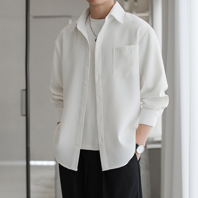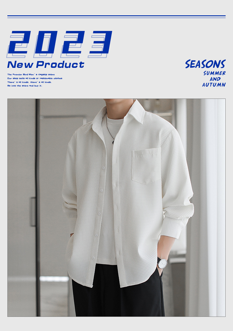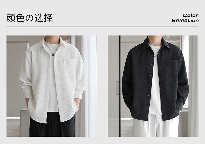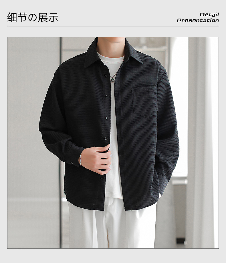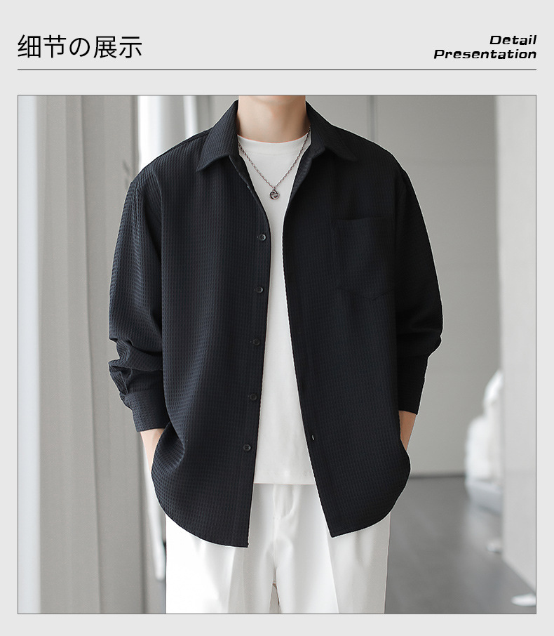 이른 가을 하이 엔드 디자인 센스 셔츠 남성용 긴팔 솔리드 컬러 느슨한 봄 및 가을 남성용 와플 셔츠 자켓