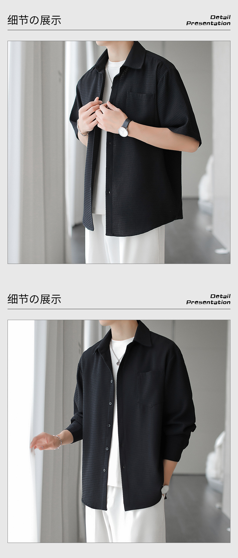 이른 가을 하이 엔드 디자인 센스 셔츠 남성용 긴팔 솔리드 컬러 느슨한 봄 및 가을 남성용 와플 셔츠 자켓스토어 가기
