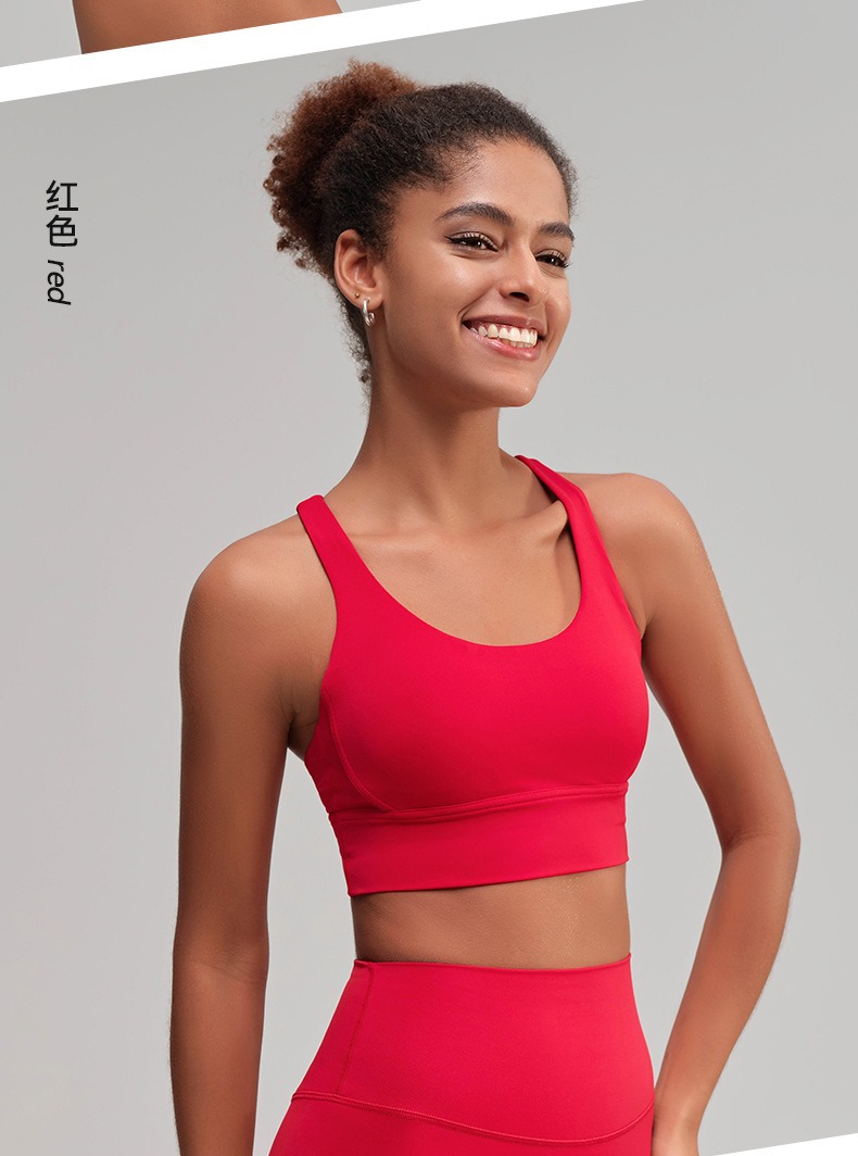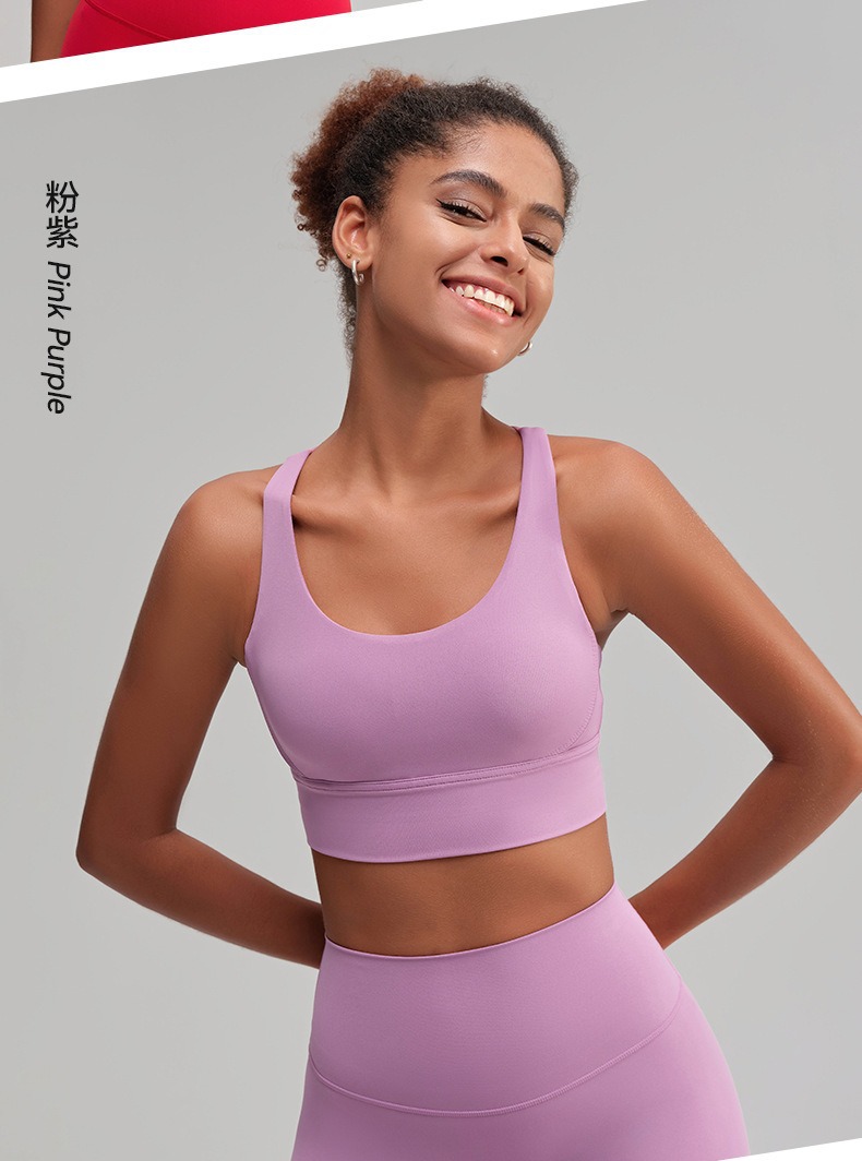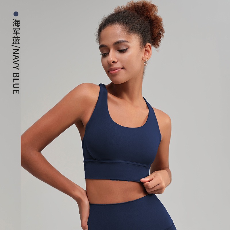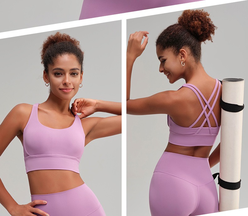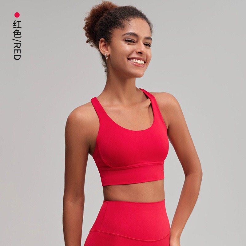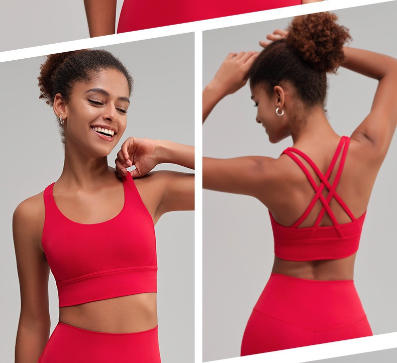 유럽과 미국의 벌거 벗은 스포츠 속옷 여성용 크로스 백 피트니스 요가 탑 가죽 충격 흡수 피트니스 브래지어 조끼