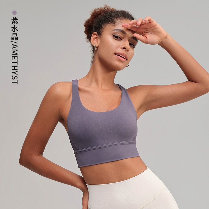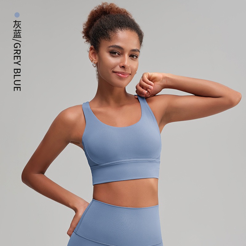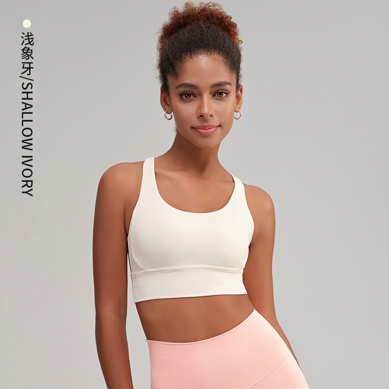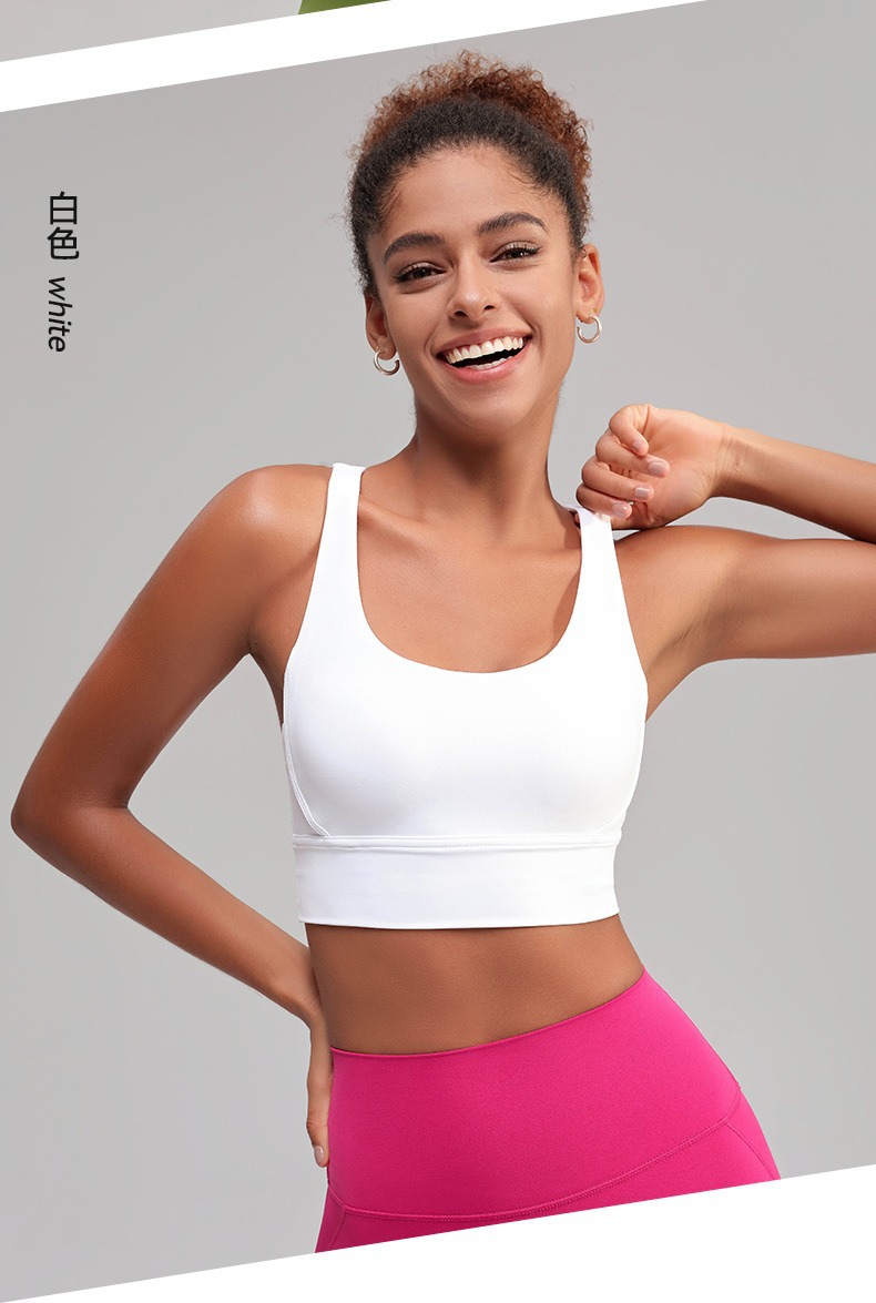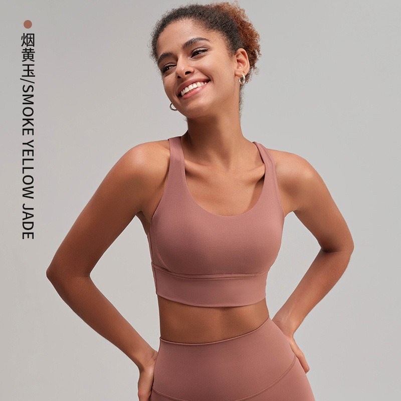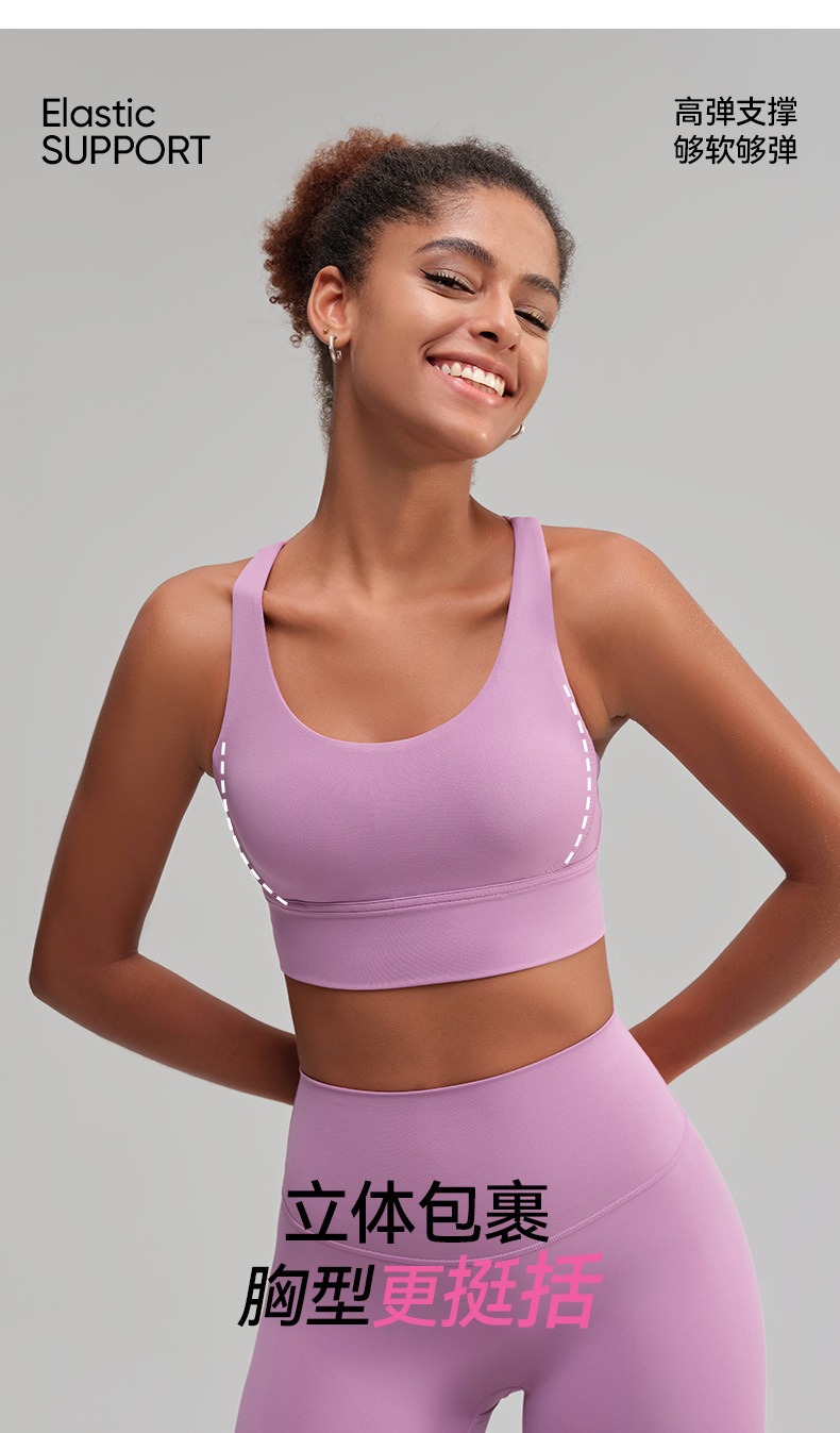 유럽과 미국의 벌거 벗은 스포츠 속옷 여성용 크로스 백 피트니스 요가 탑 가죽 충격 흡수 피트니스 브래지어 조끼