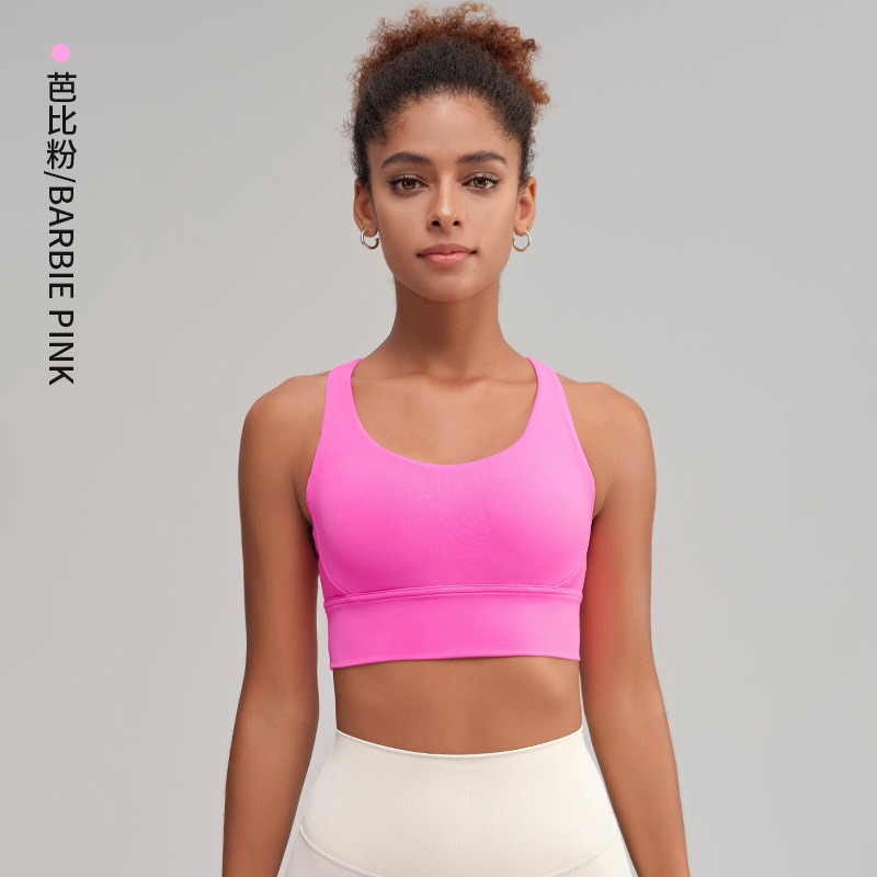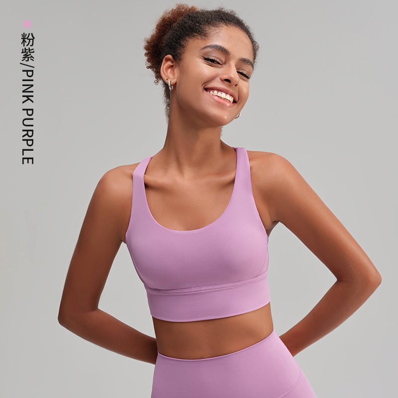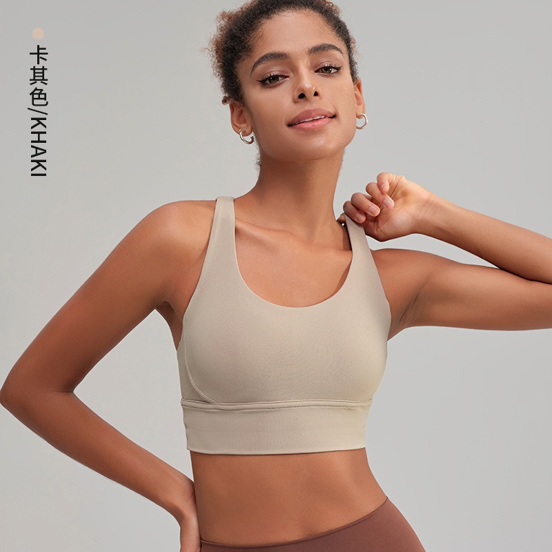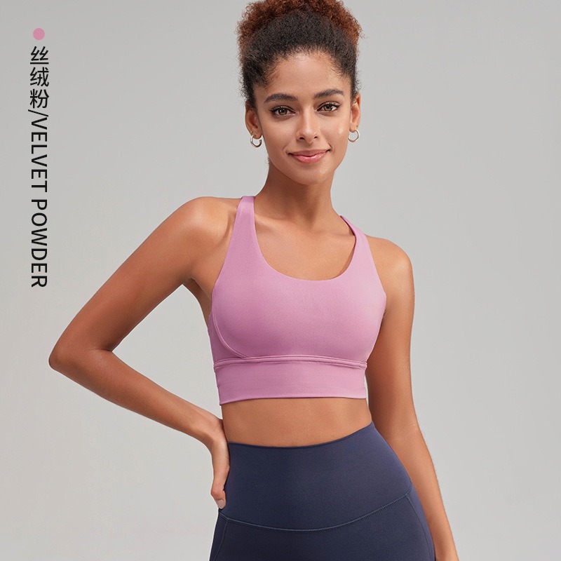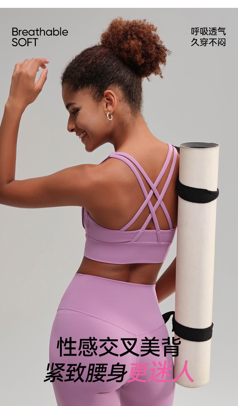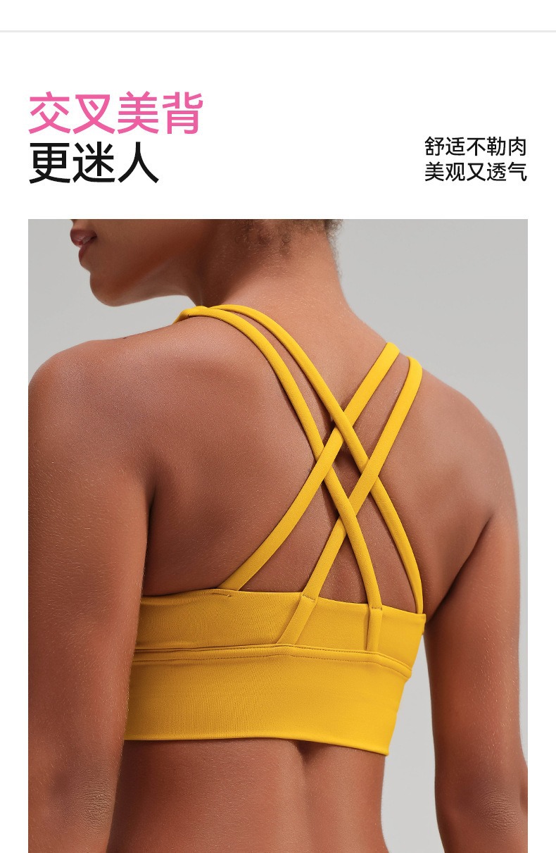 유럽과 미국의 벌거 벗은 스포츠 속옷 여성용 크로스 백 피트니스 요가 탑 가죽 충격 흡수 피트니스 브래지어 조끼스토어 가기