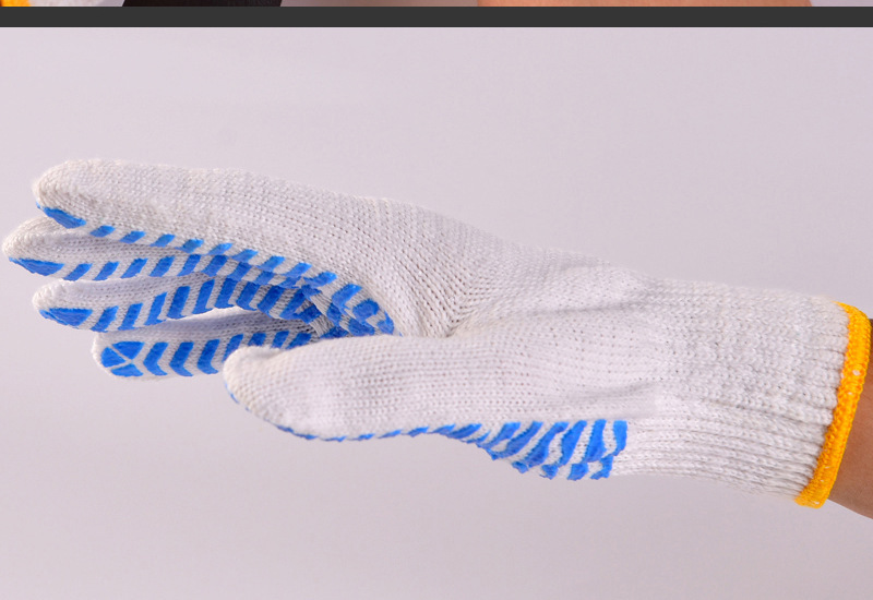 작업자의 작업 장갑 노동 보호 화이트 코튼 원사 장갑 내마모성 미끄럼 방지 나일론 장갑 두꺼운 분배 분배 플라스틱 담그는