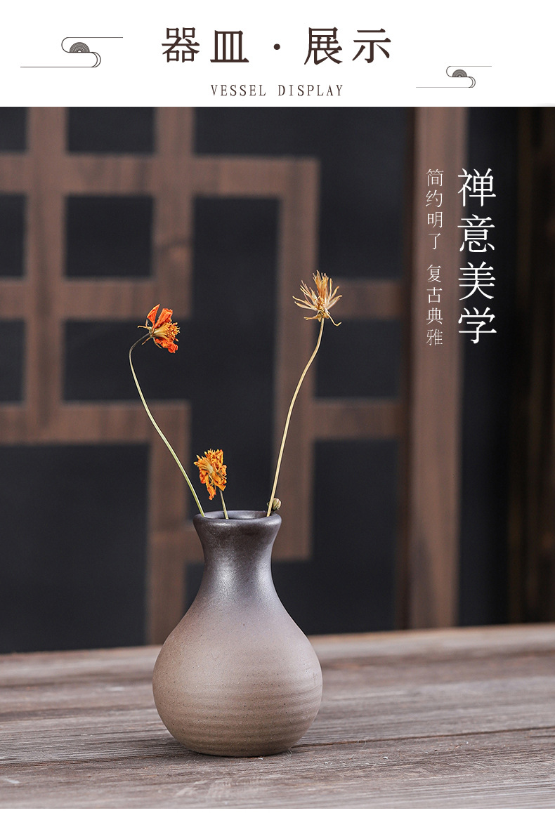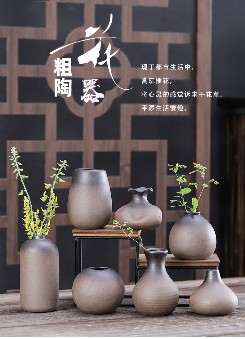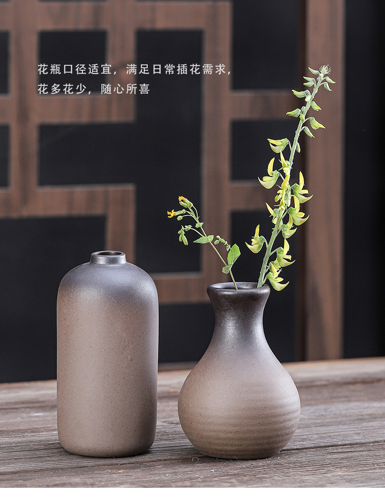 간단한 복고풍 꽃 꽃병 일본 세라믹 꽃병 거친 도자기 꽃 삽입 현대 홈 장식 꽃 장식품 국경스토어 가기